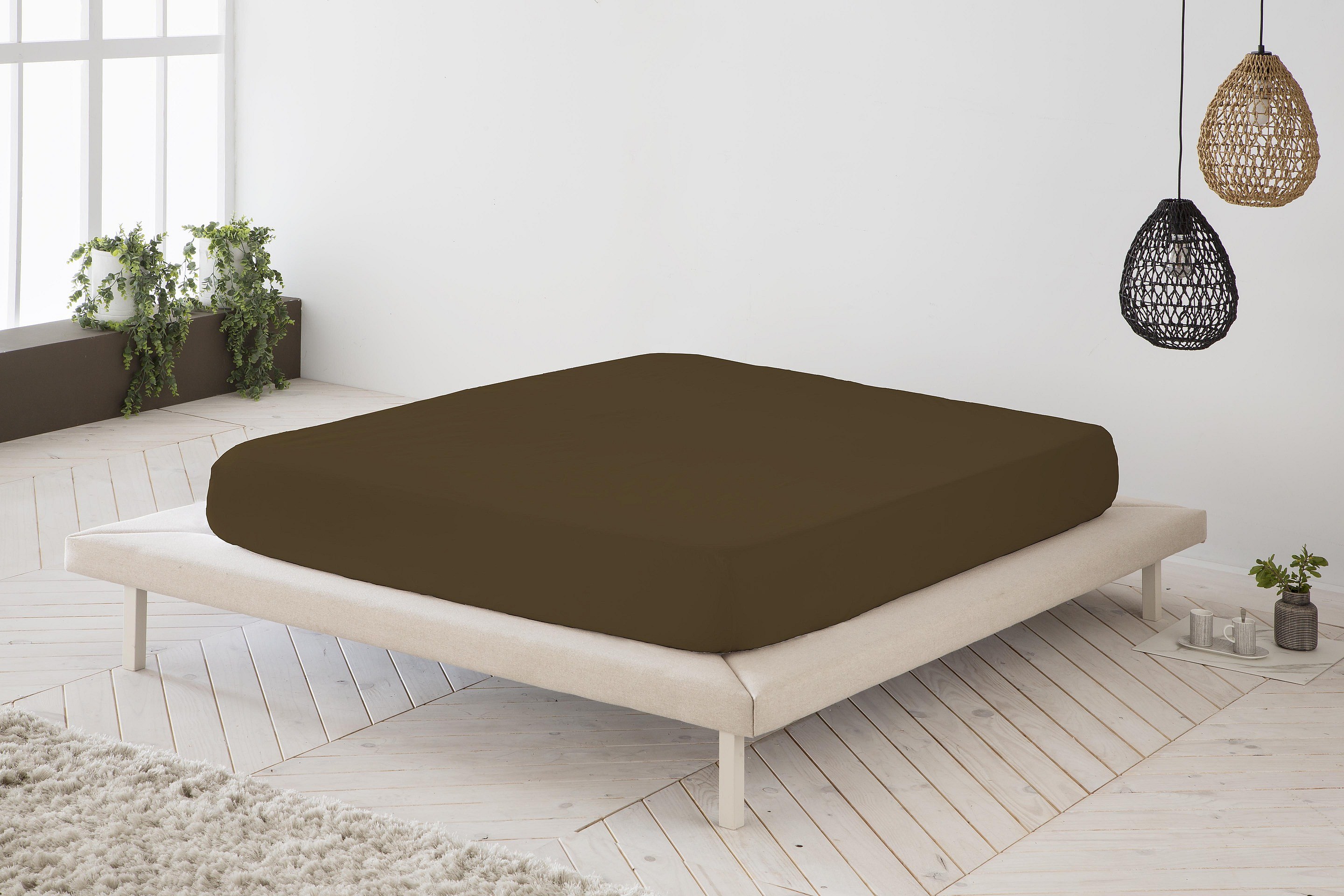 Plain adjustable fitted sheet in plain color Chocolate bed 160 cm - 160x190/200 cm, 100% cotton.