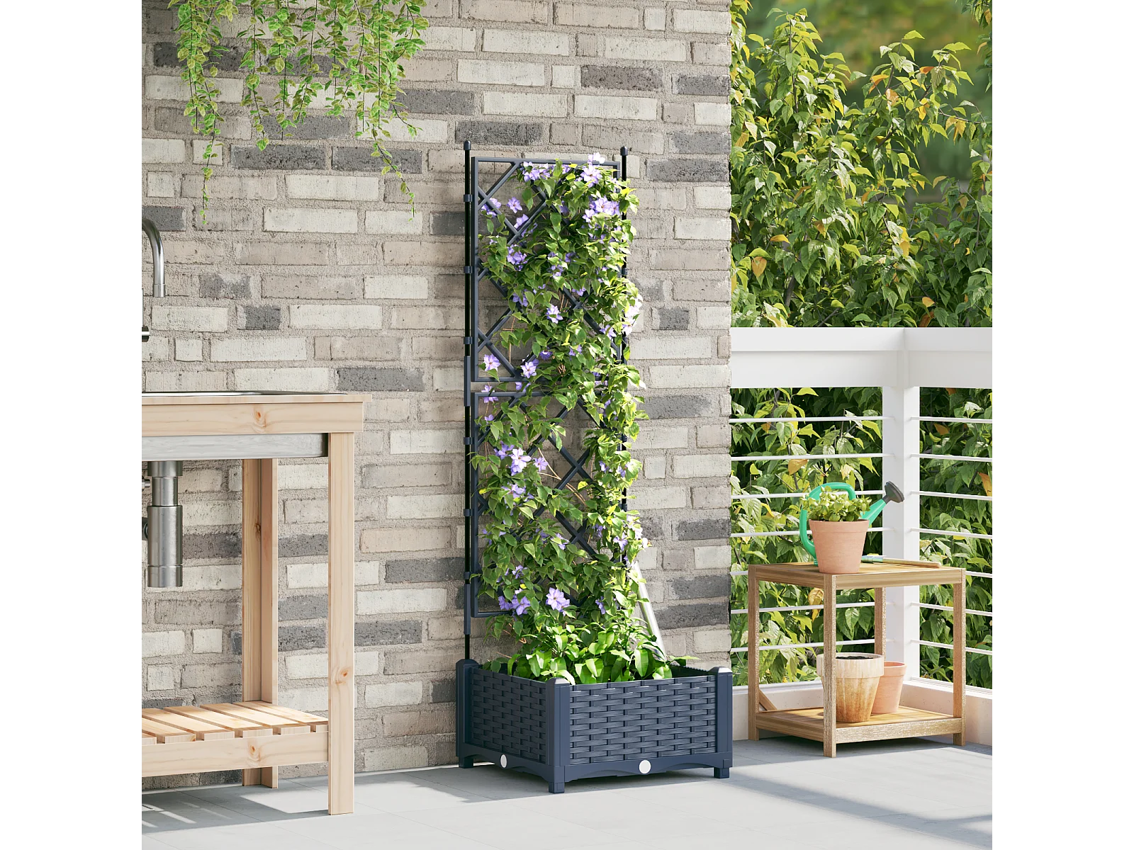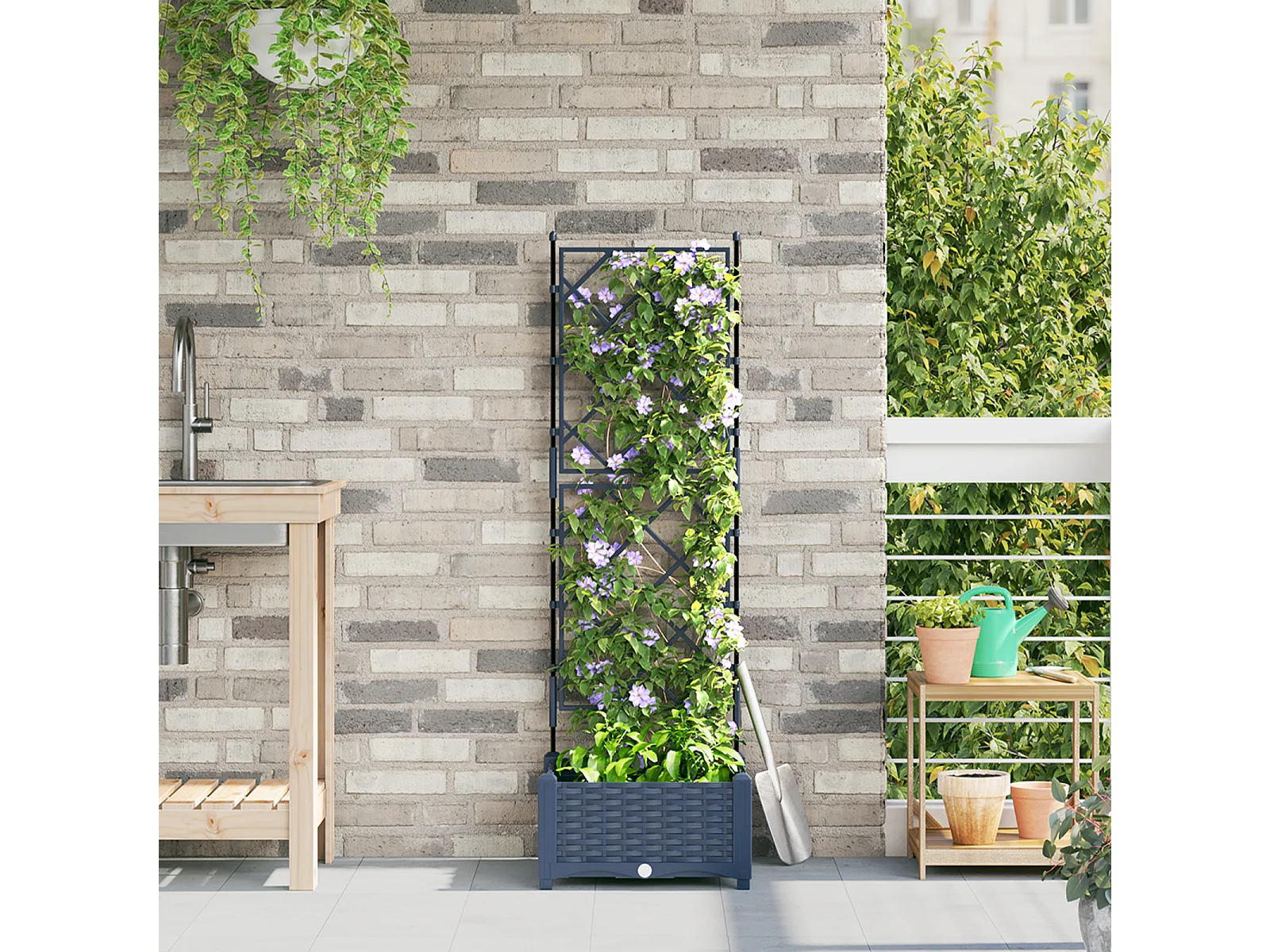 Plantenbak met trellis blauwgrijs 40x40x121,5 cm PP