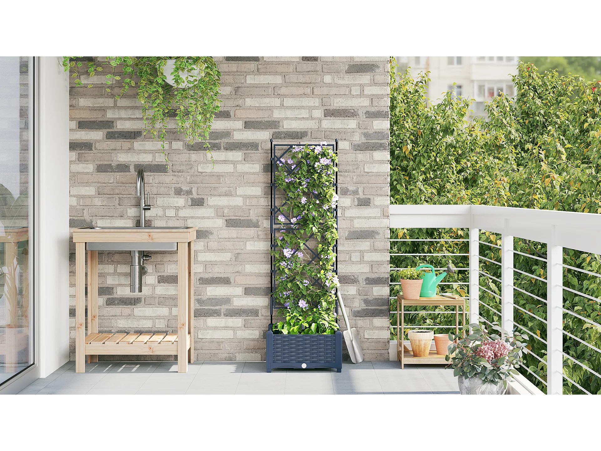 Plantenbak met trellis blauwgrijs 120x40x121,5 cm PP