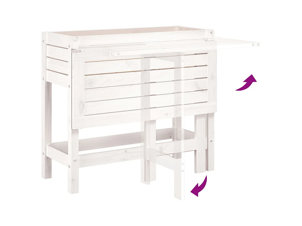Plantenbak met inklapbaar tafelblad massief grenenhout wit BE337530