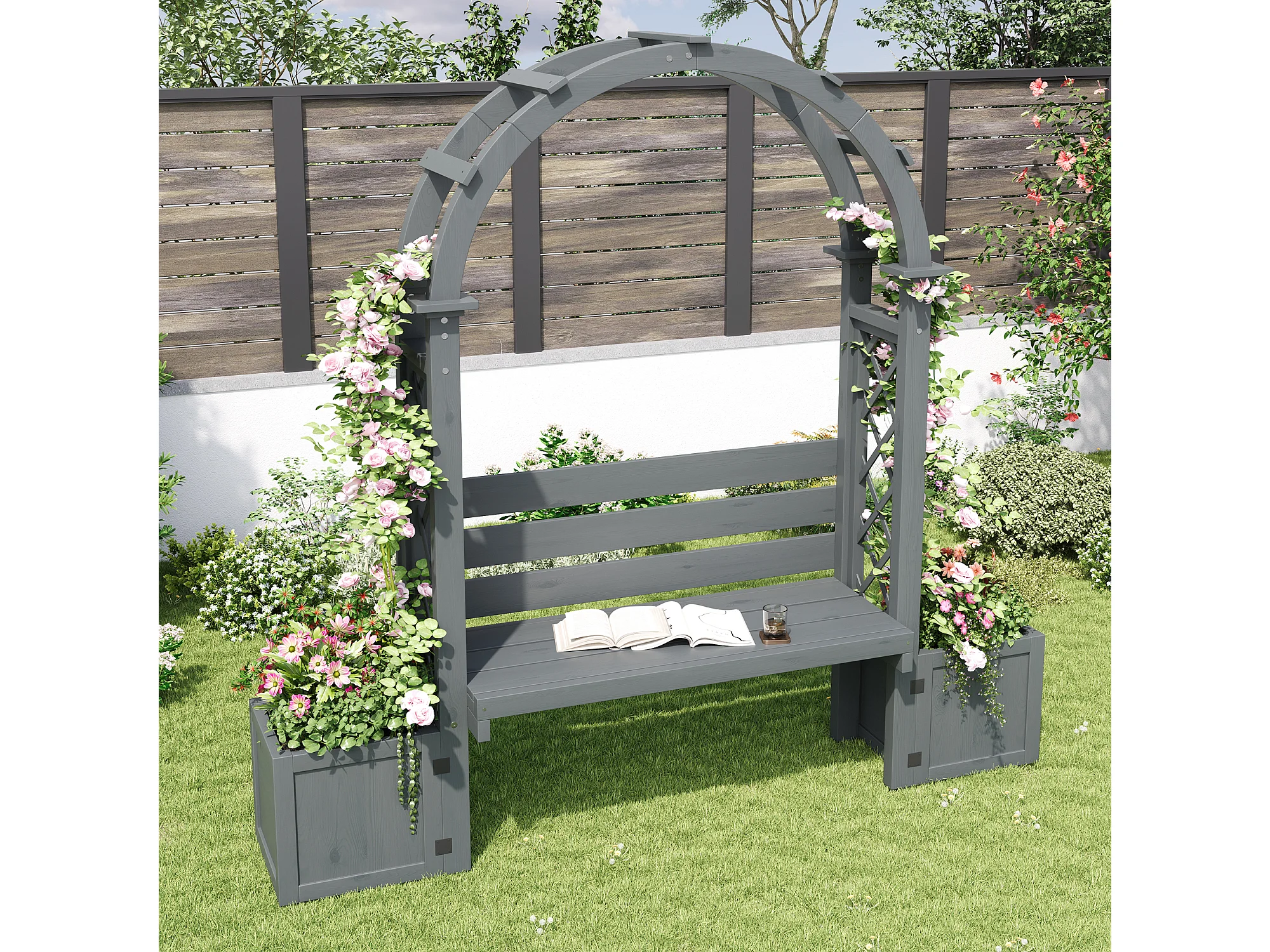 Plantenbak met klimrek en zitjes voor tuin, binnenplaats en terras - Grijs