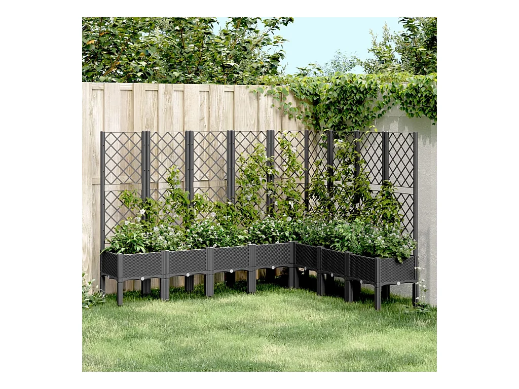 Plantenbak met latwerk 200x160x142 cm polypropeen zwart