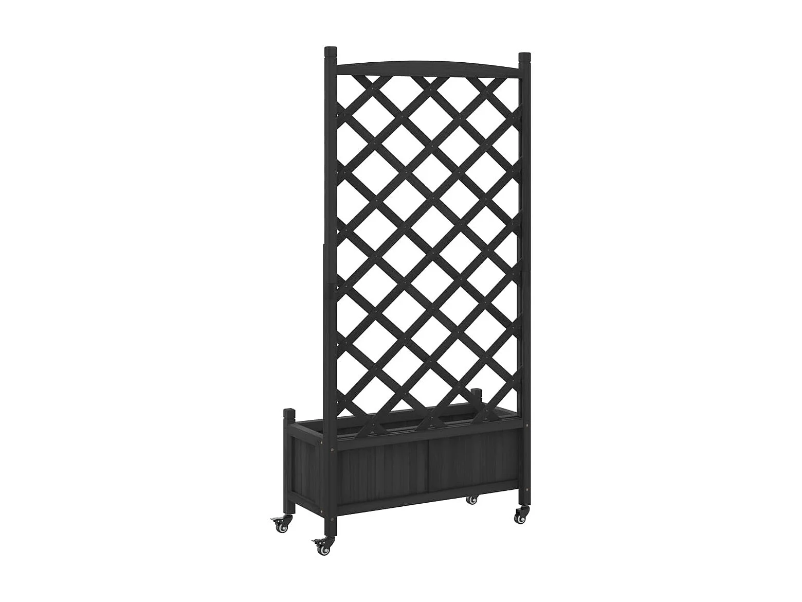 Plantenbak met latwerk en wielen massief vurenhout zwart