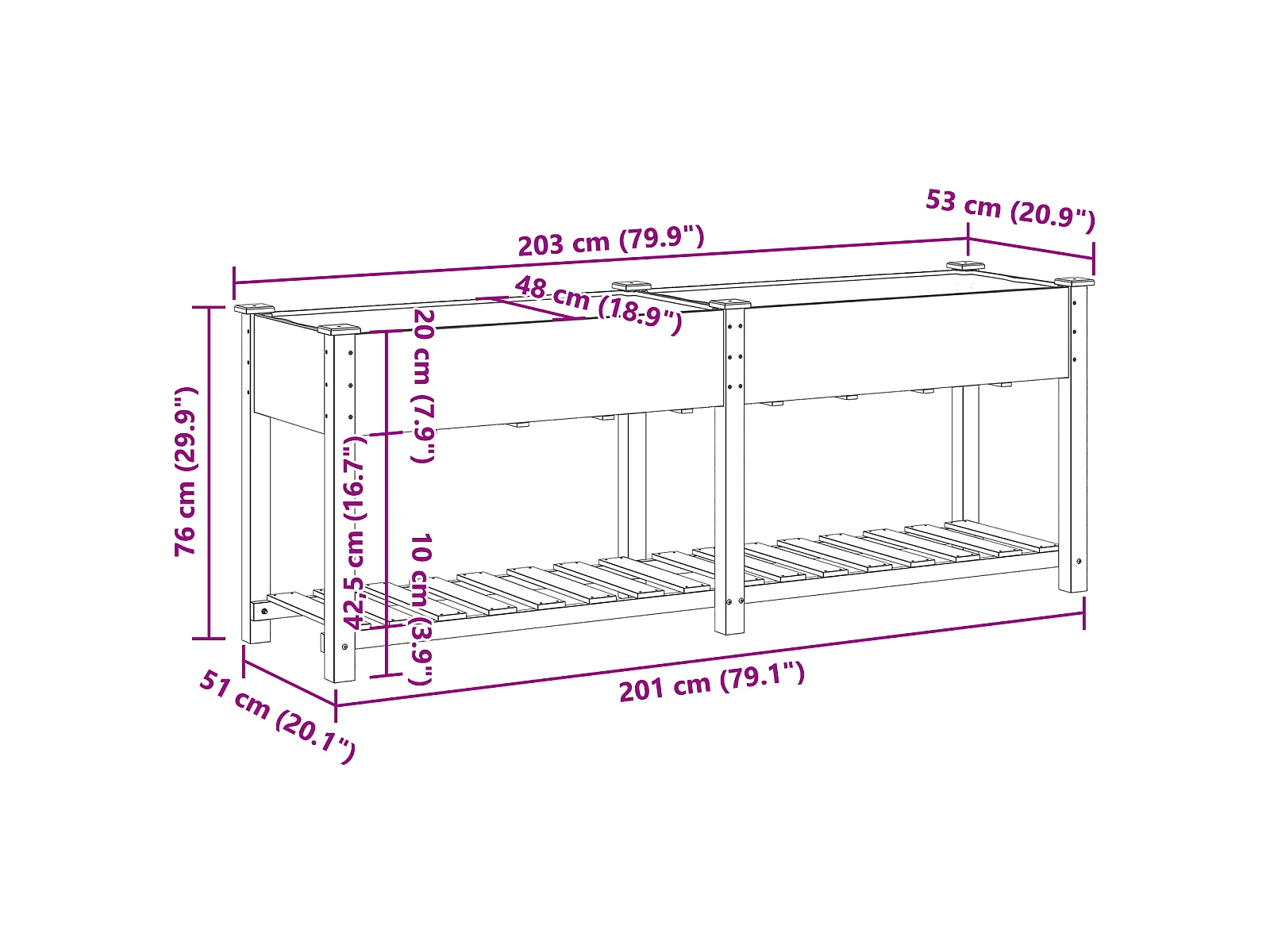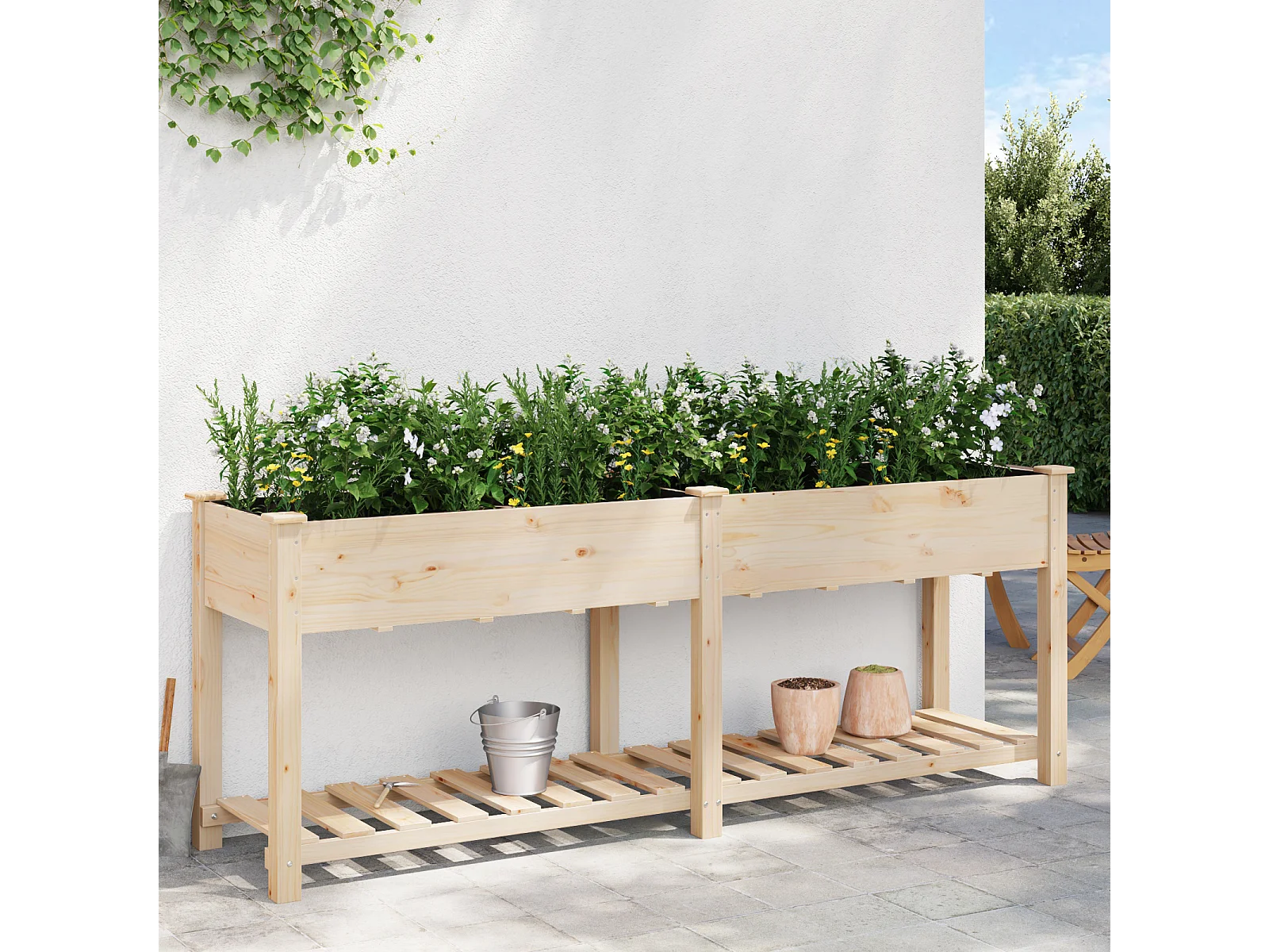 Plantenbak met plank 203x53x76 cm van massief dennenhout