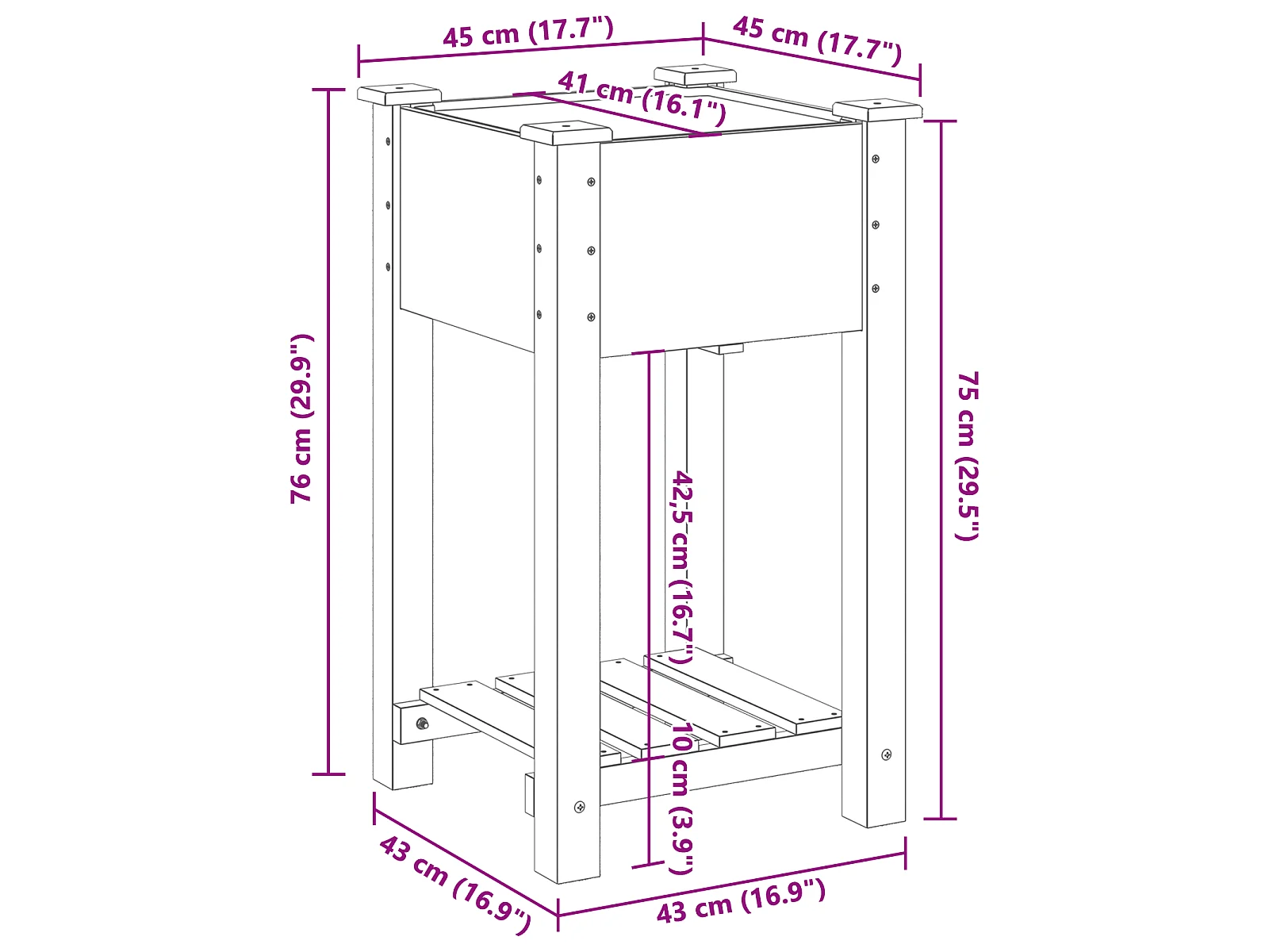 Plantenbak met plank 45x45x76 cm van massief dennenhout