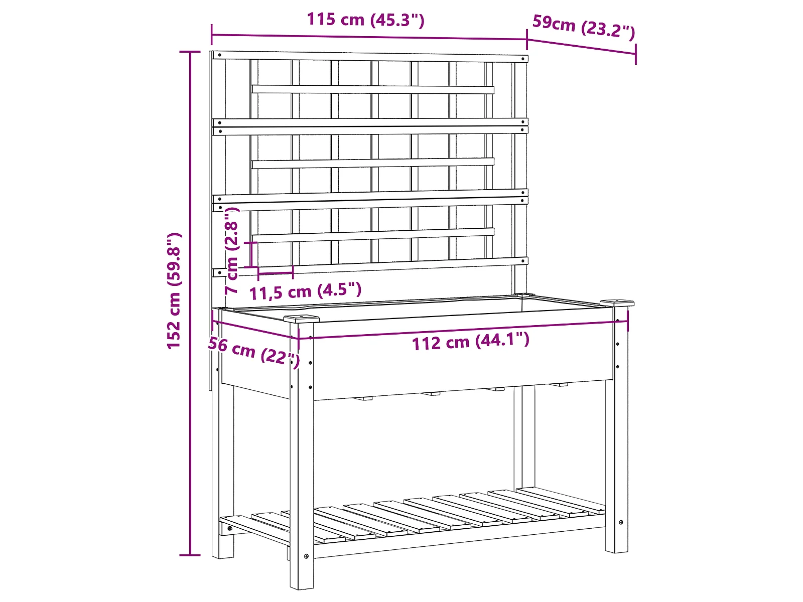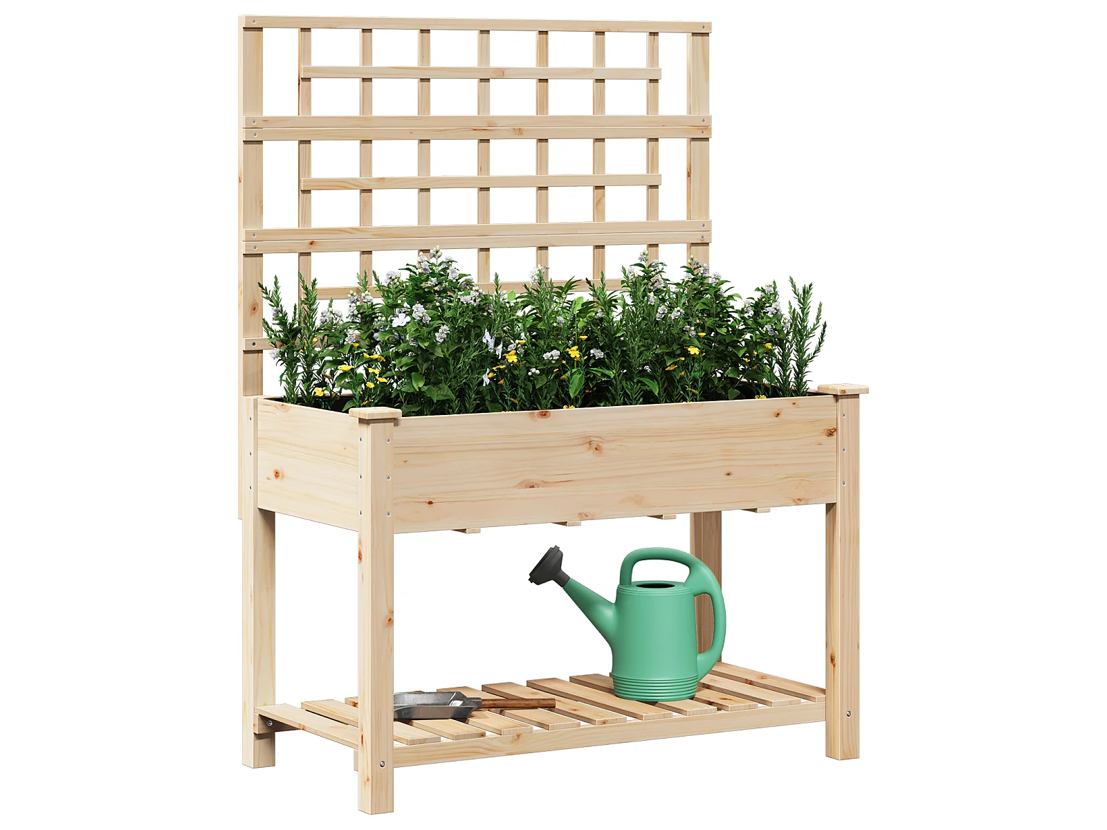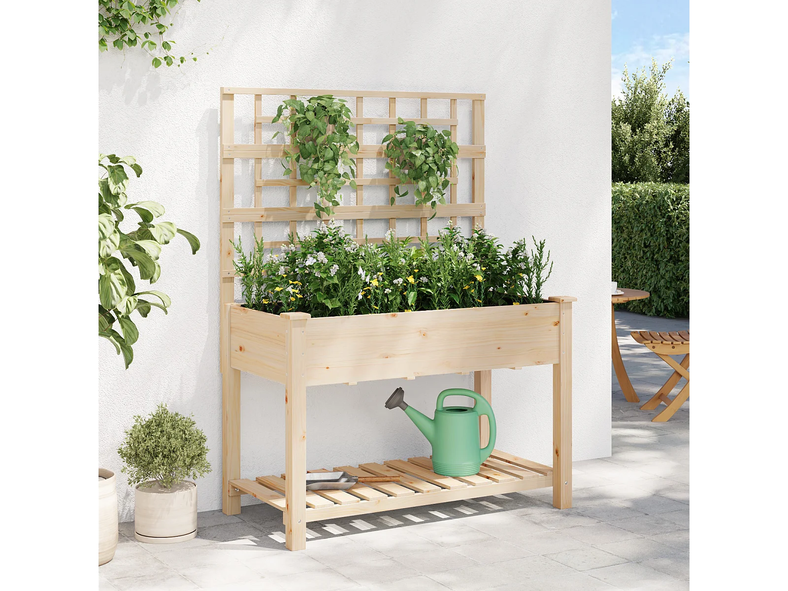 Plantenbak met trellis en plank 115x59x152 cm van massief dennenhout