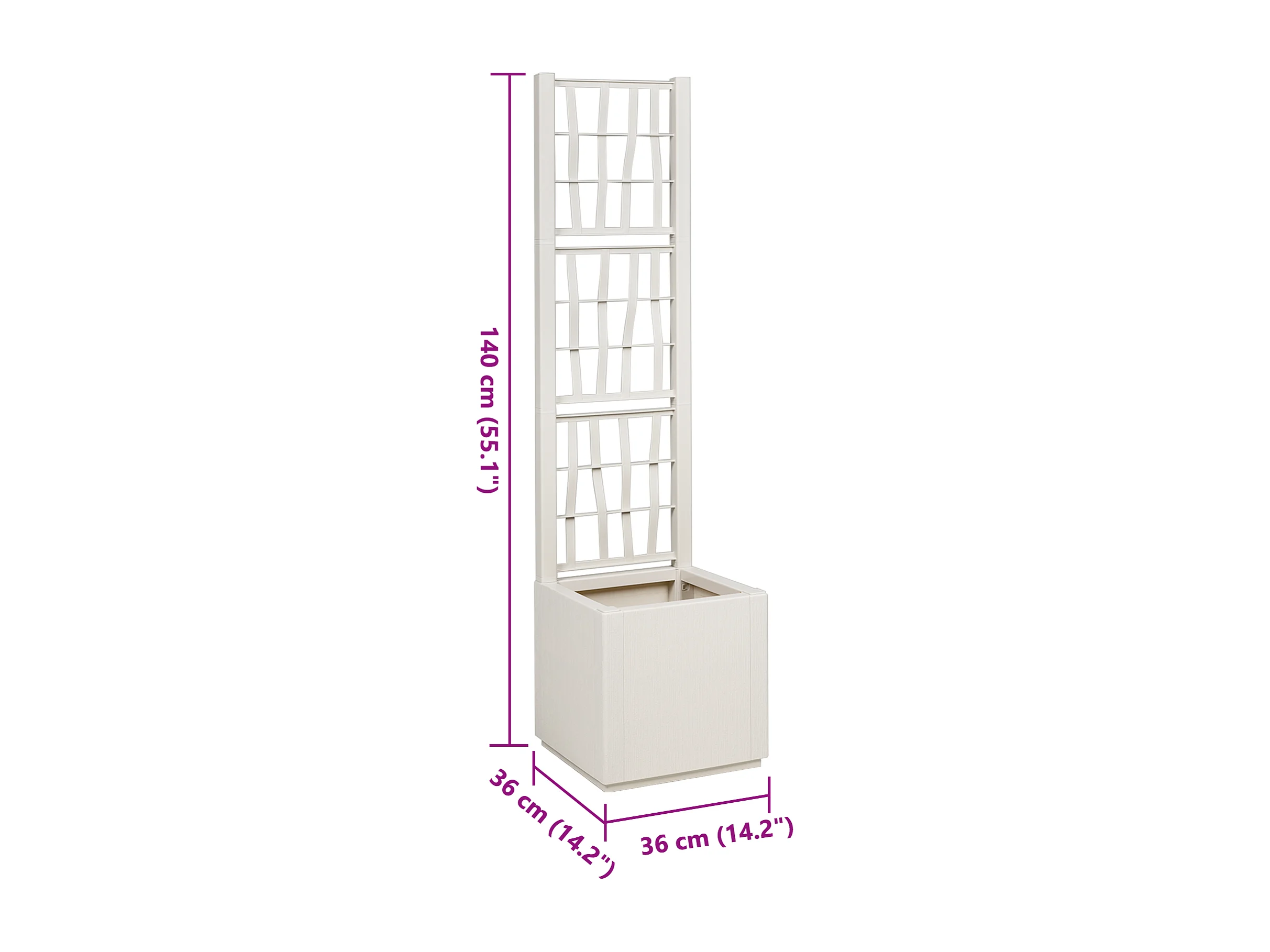 Plantenbak met trellis Wit 36x36x140 cm PP