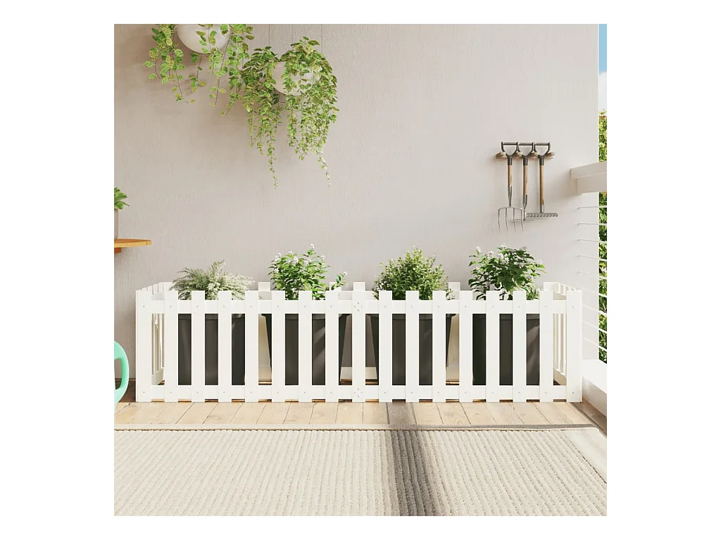 Plantenbak verhoogd hekontwerp 200x30x30 cm grenenhout wit