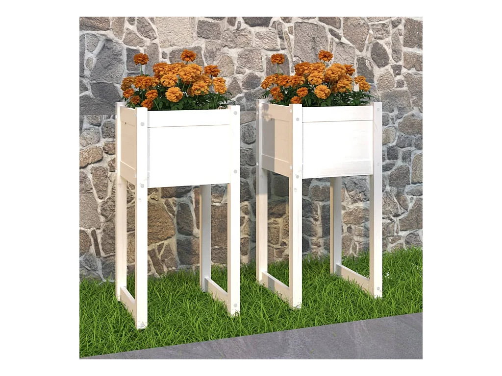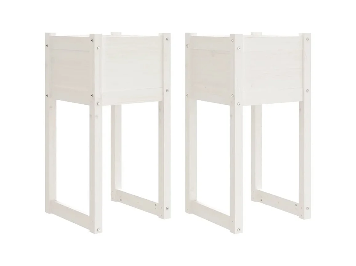 Plantenbakken 2 st 40x40x81 cm massief grenenhout wit NL982044