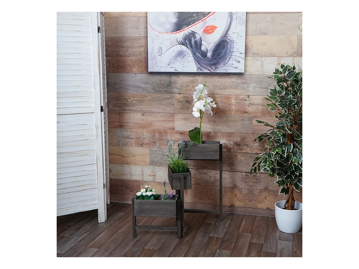 2-delige plantenstandaard, sonomagrijs, bewerkt hout