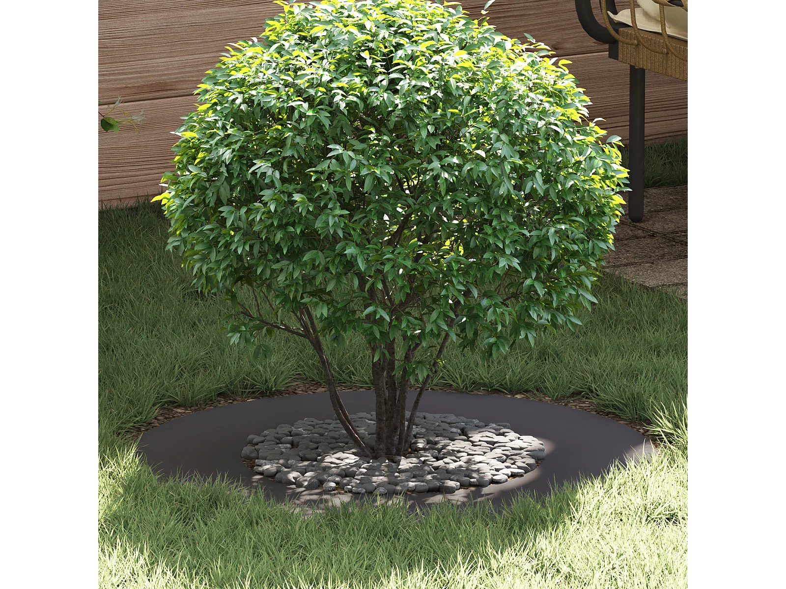Zwarte metalen potring met een diameter van 70 cm