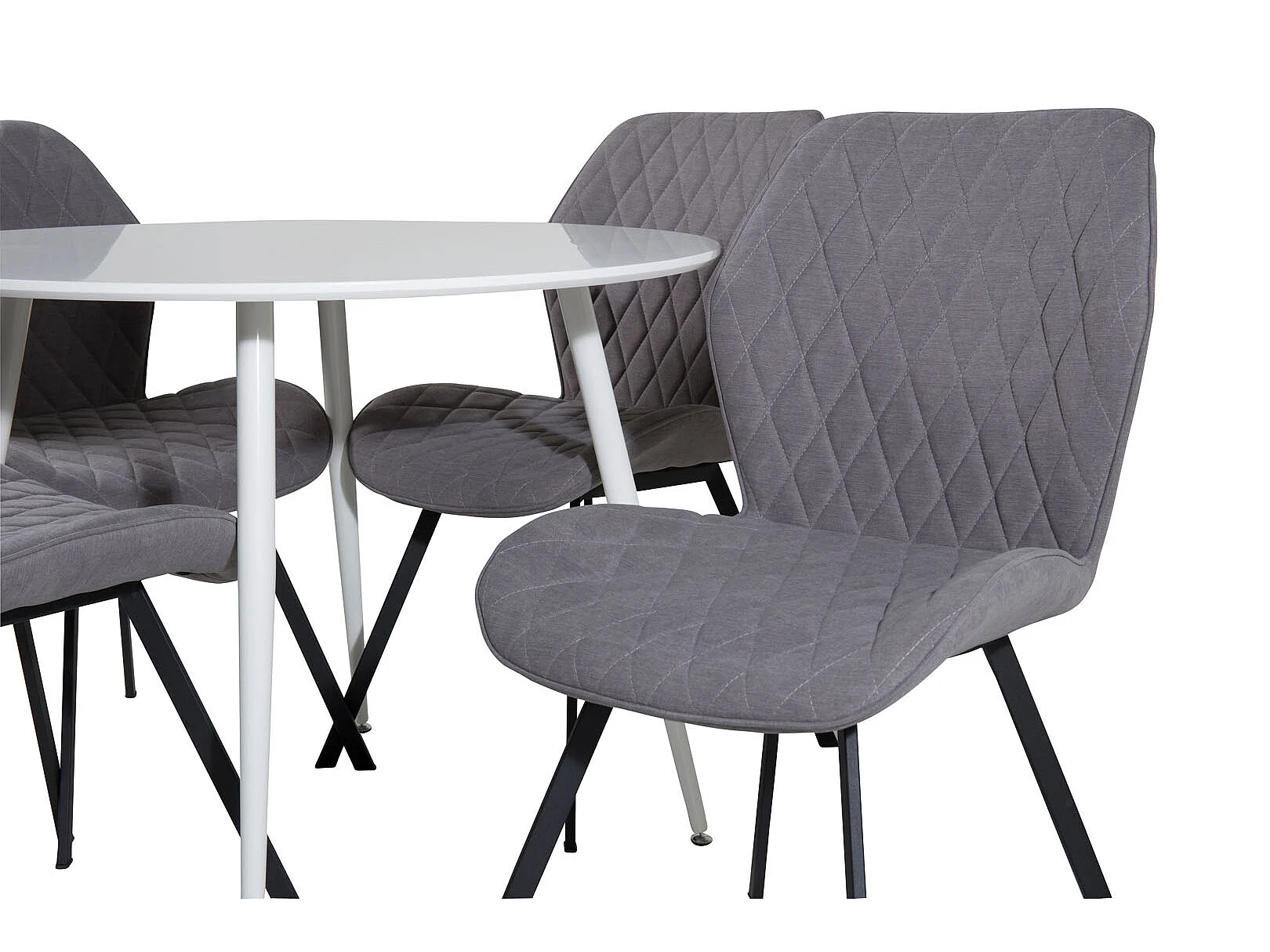 PlazaWHWH100 eethoek eetkamertafel wit en 4 Gemma eetkamerstal grijs.