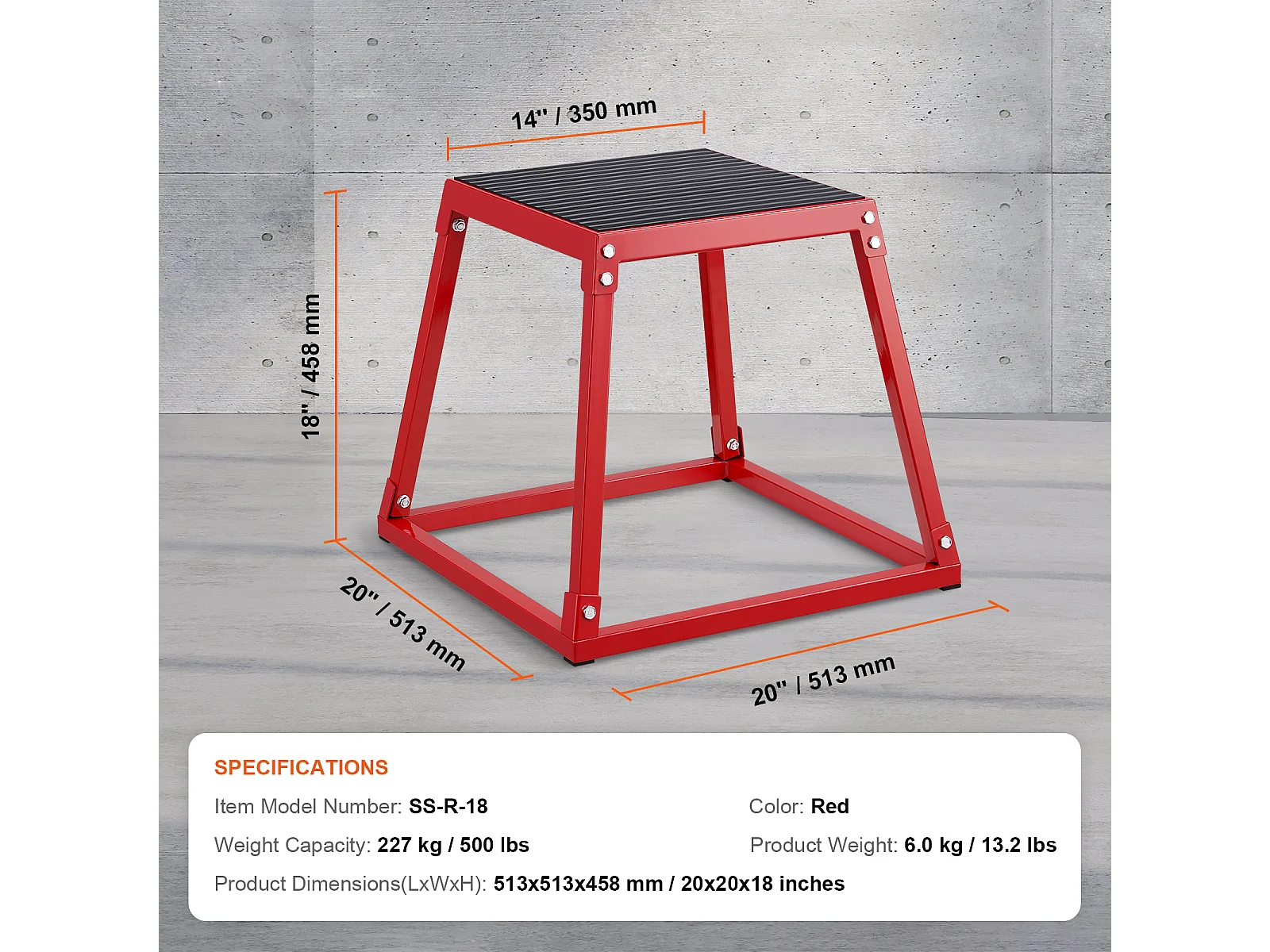Pliometrische Springdoos SucceBuy, 44,5x44,5x30,5 cm, Rood, Lading 227 kg, voor Pliometrische Step-up-Training