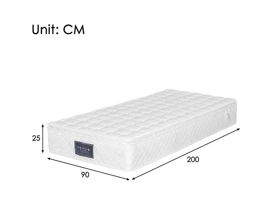 Matras van 90 x 200 cm met pocketvering en geïntegreerde matrastopper, 25 cm dik