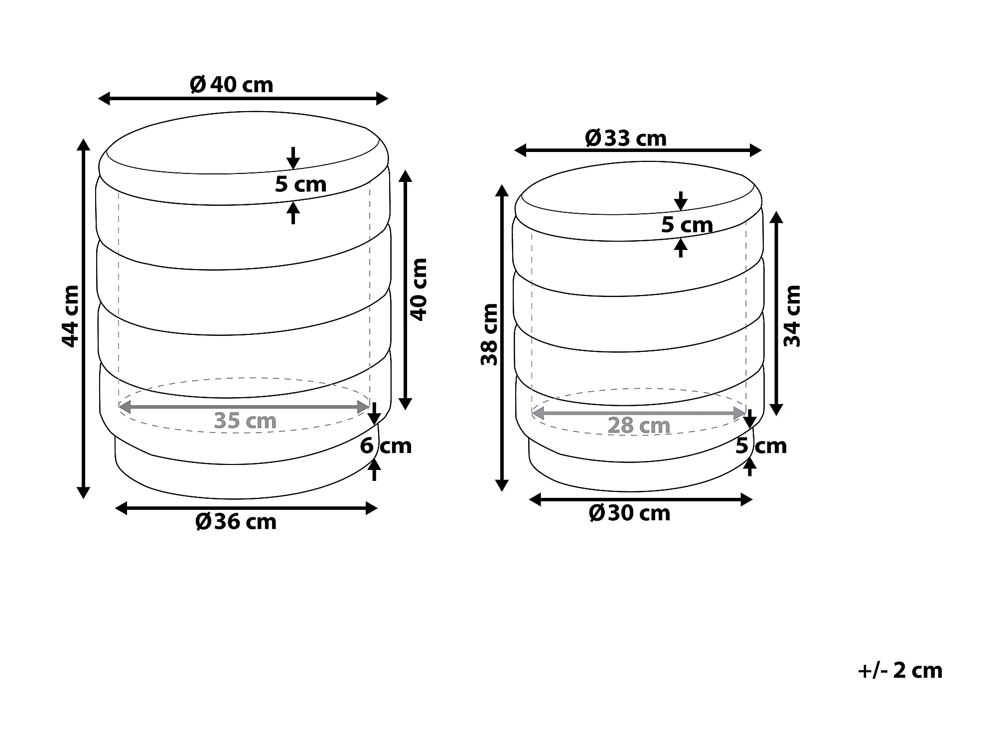 Set van 2 opbergpoefs GARLAND Fluweel Roze 40/33 cm 40/33 cm 44/38 cm