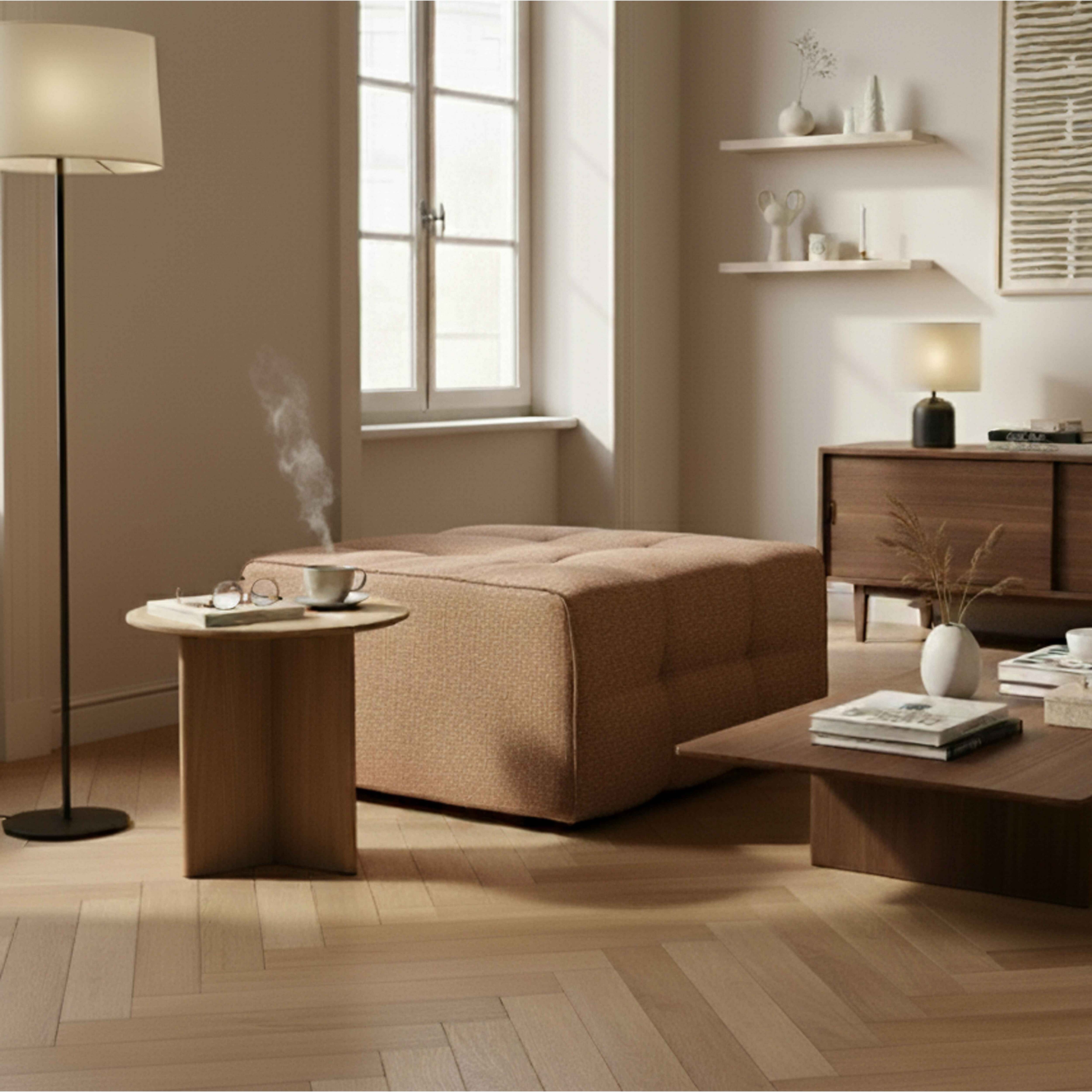 Poef van terracotta stof