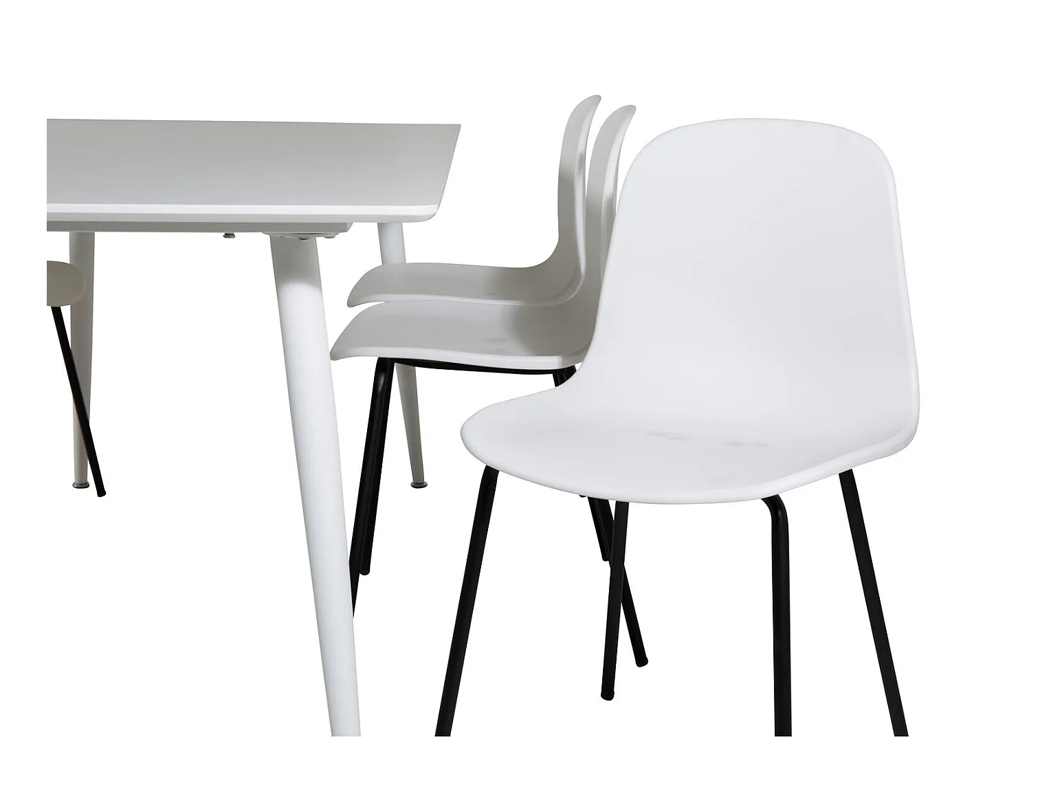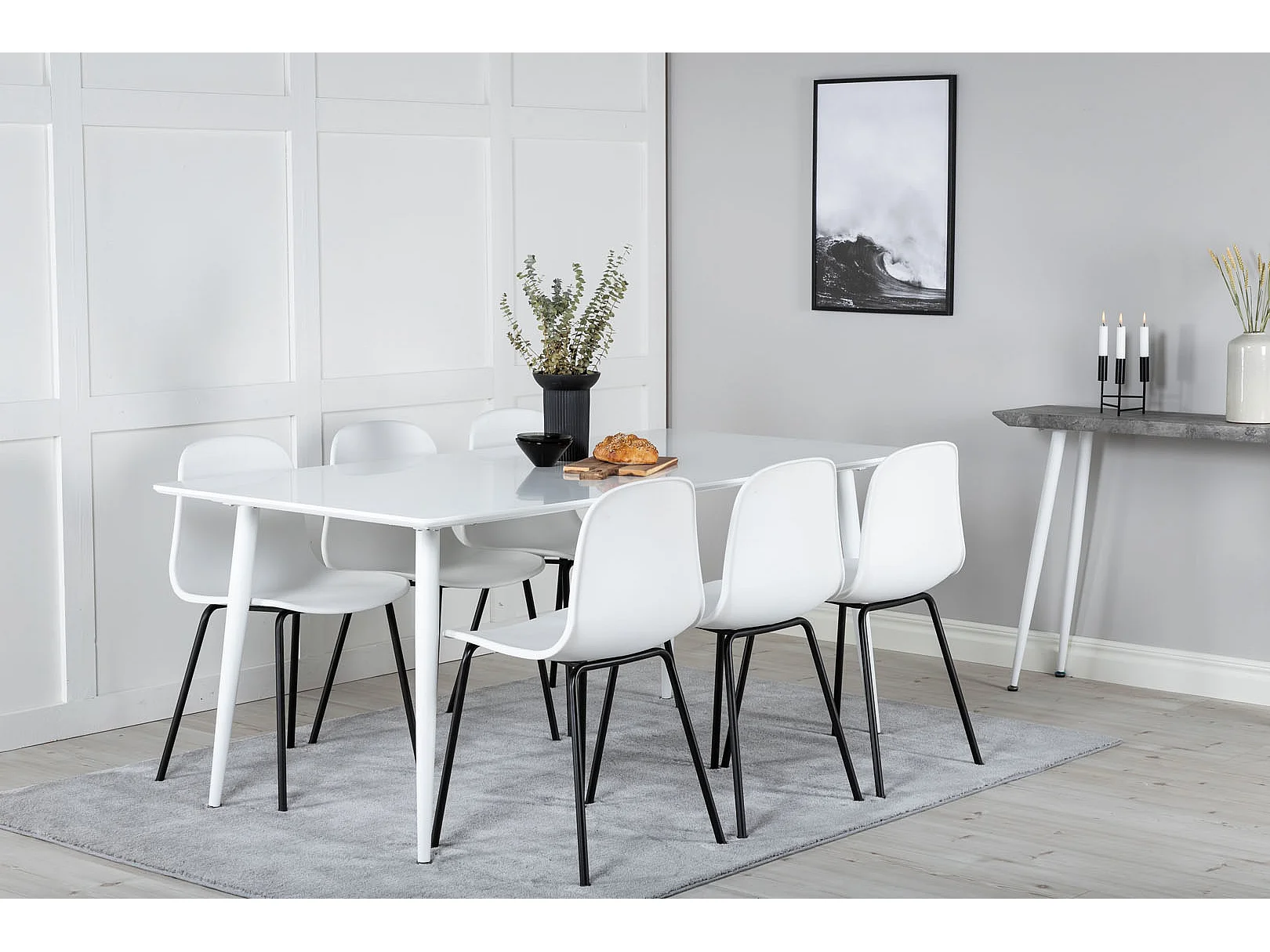 Polar180X90WHWH eethoek eetkamertafel wit en 6 Arctic eetkamerstal wit, zwart.