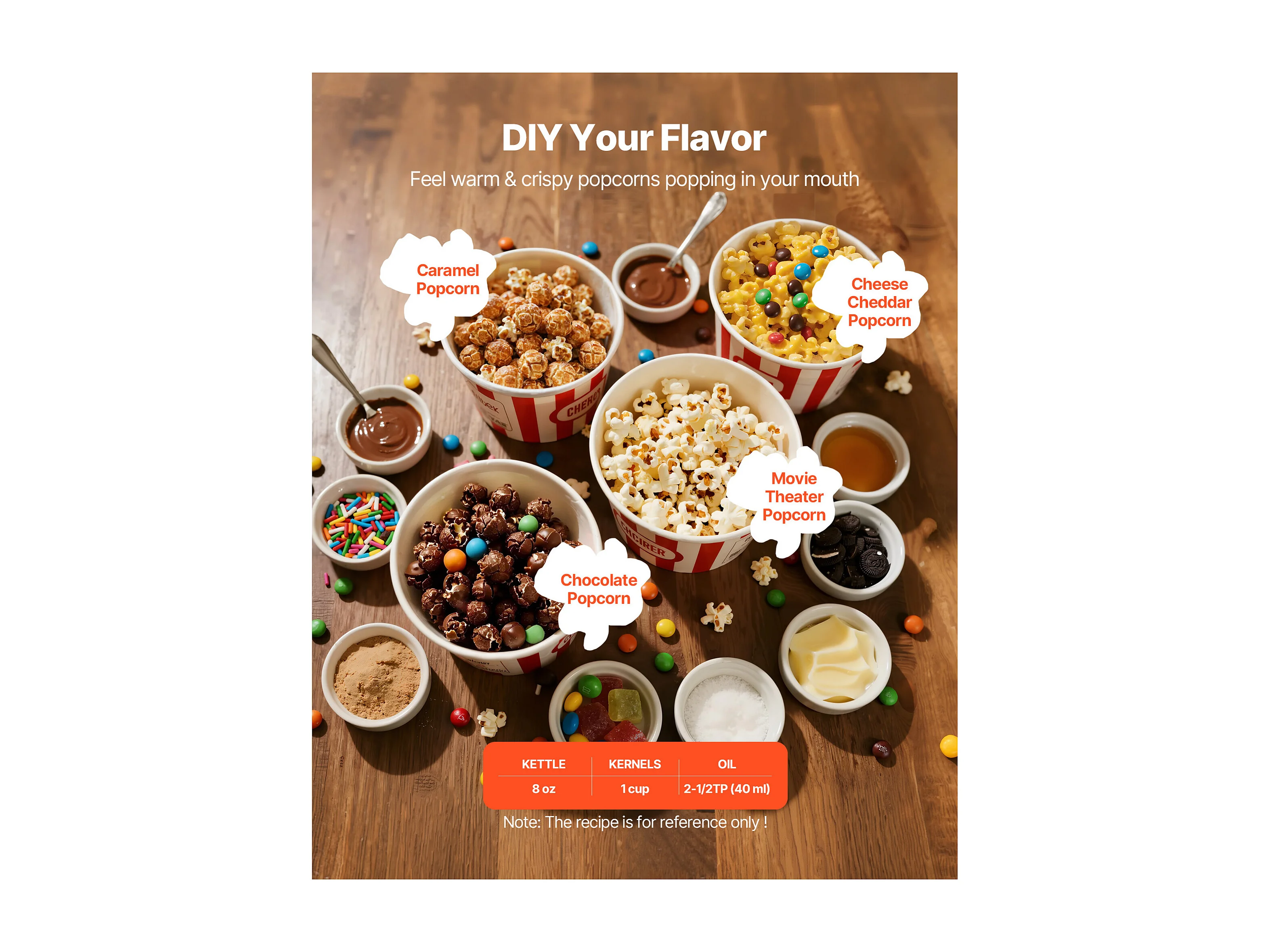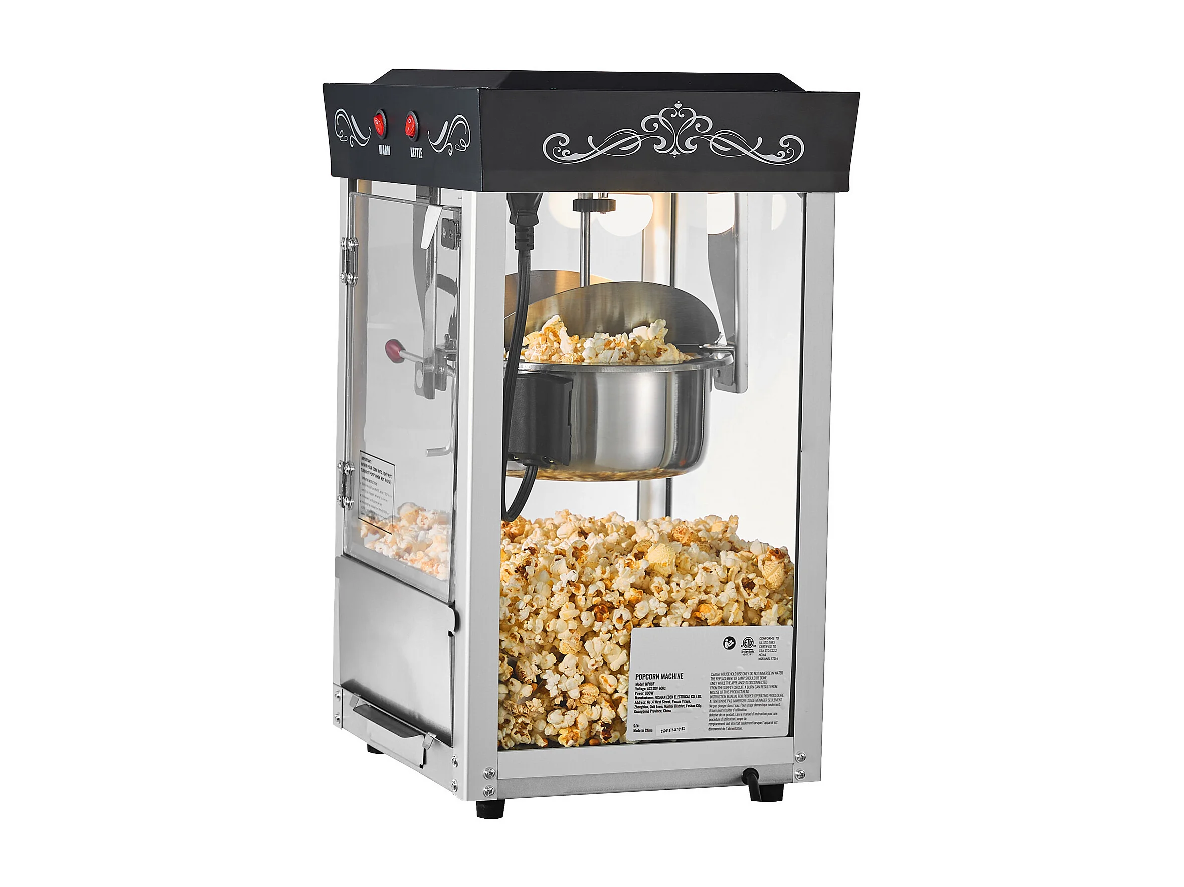 Popcornmachine SucceBuy Countertop, Popcornmaker 800 W, Grote RVS Kom 0,2 kg, 48 Kopjes per Batch, met 2-Knops Bediening, Glas Wand
