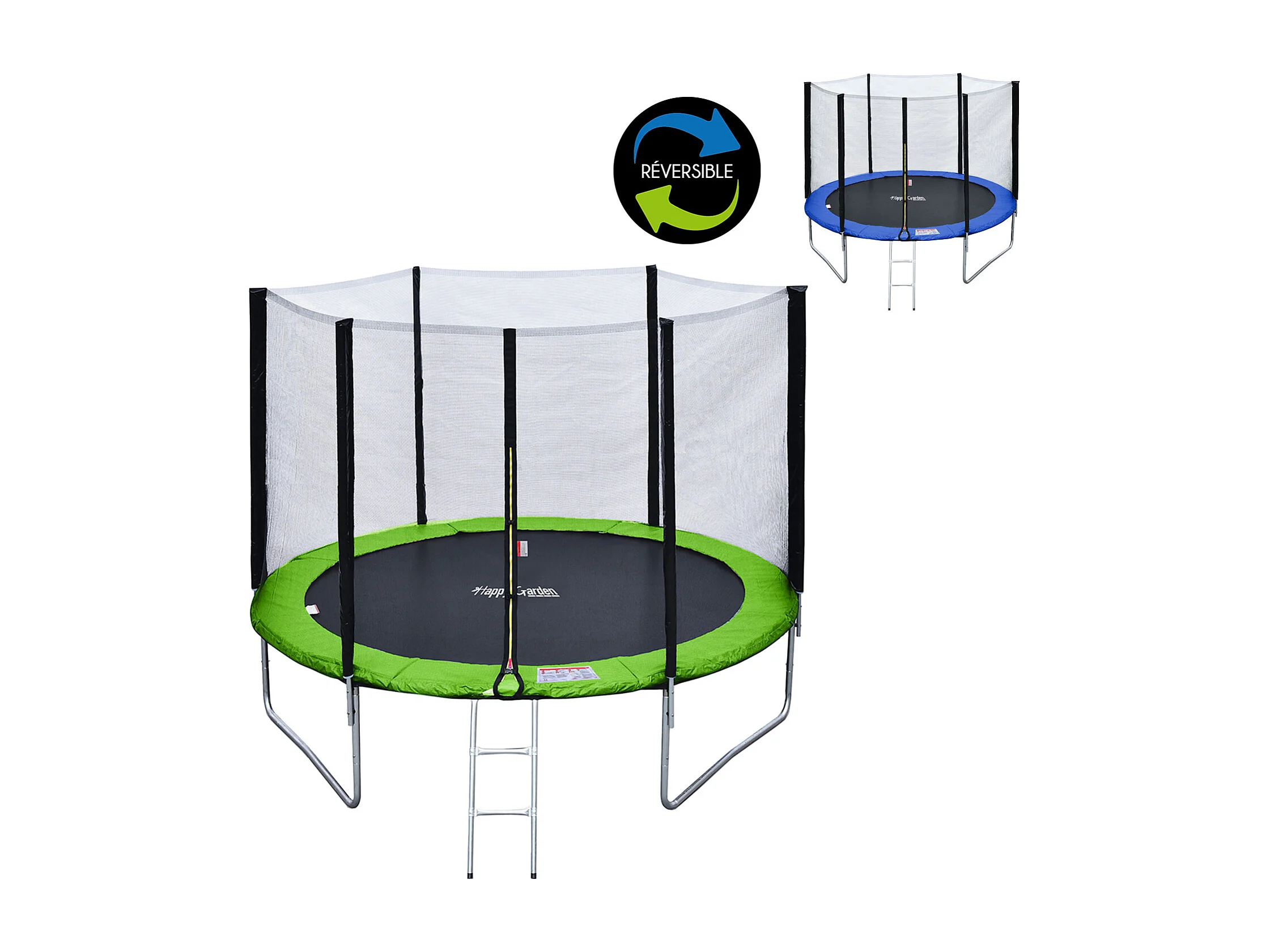 Premium Pack Trampoline 305cm omkeerbaar blauw/groen ADELAÏDE + net, ladder, hoes en verankeringsset
