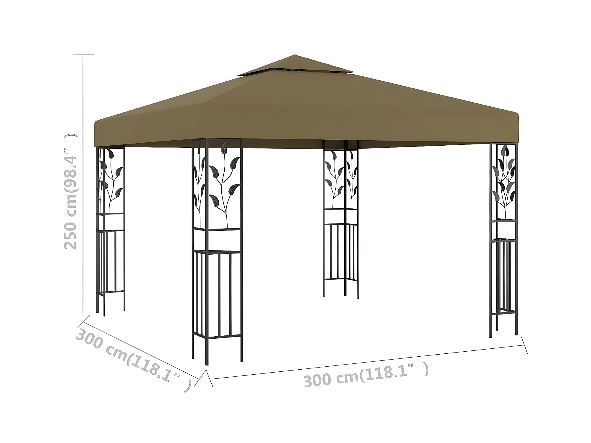 Prieel met gordijnen 3x3 m staal taupe NL385219
