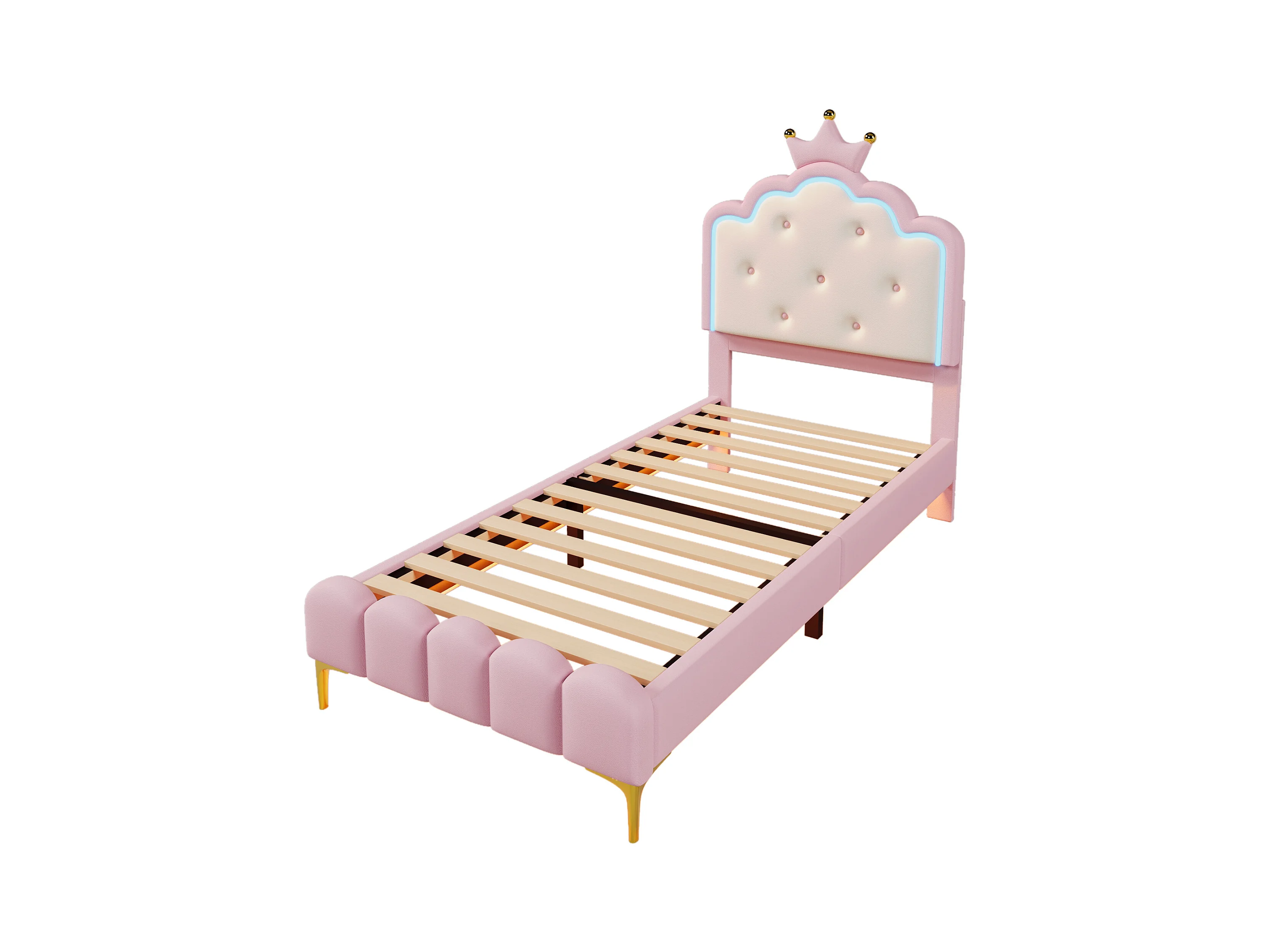 Prinsessenbed 90x200 cm, met ledverlichting, kroonvorm, PU, roze (203x94x129 cm)