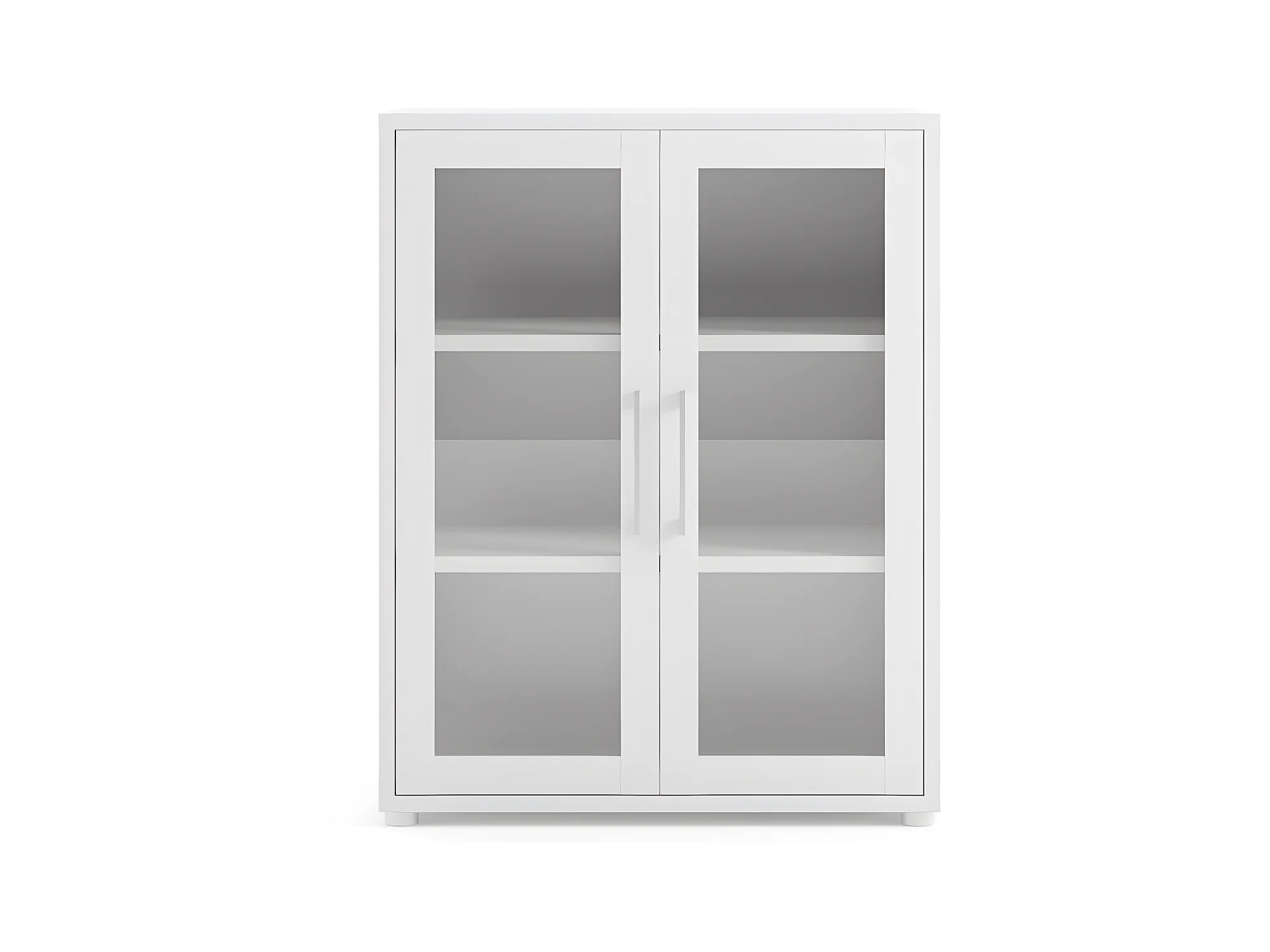 Base wandkast 2 glazen deuren en 2 planken wit, eiken structuur decor.