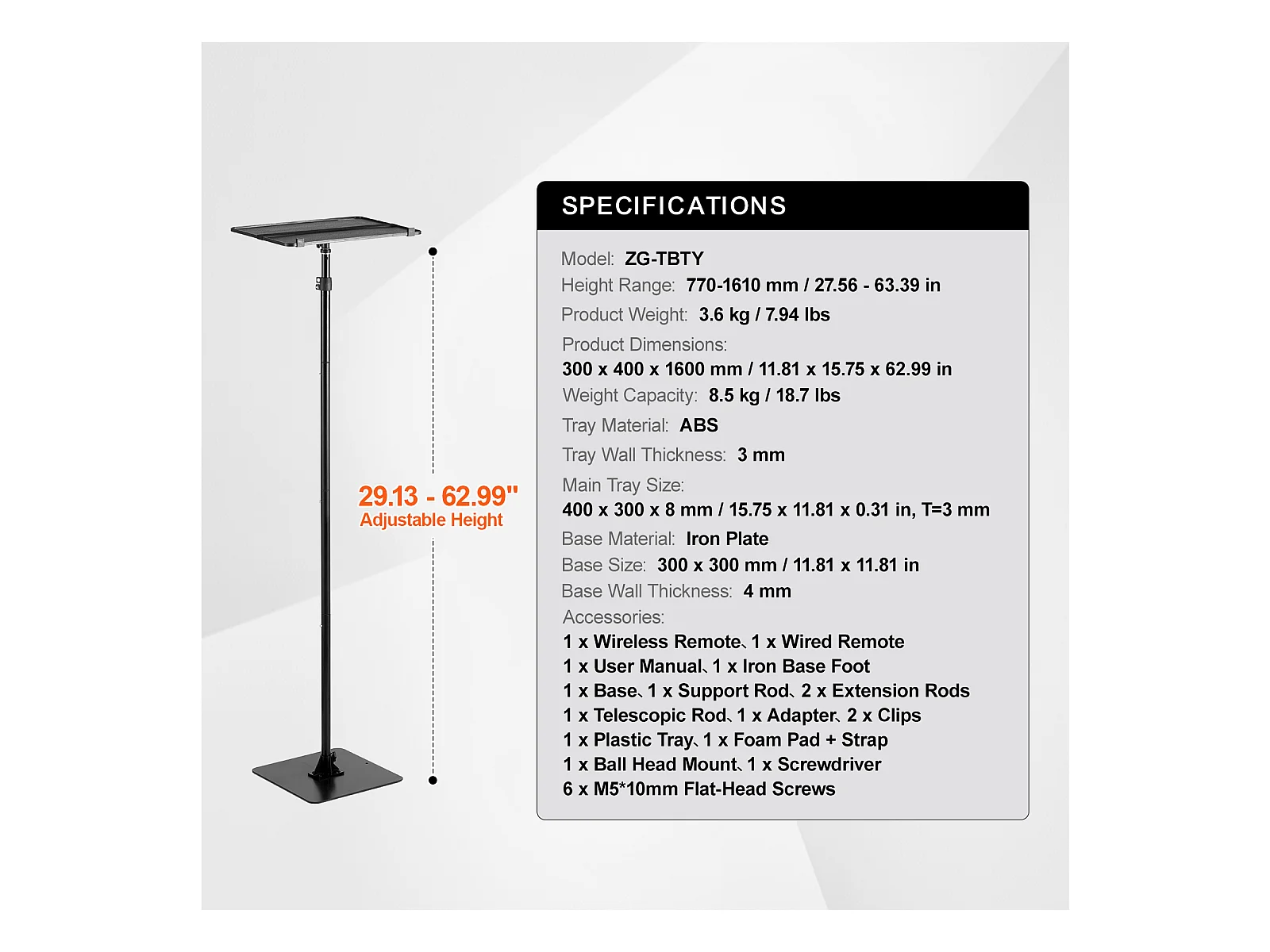 TV-Houder SucceBuy Mobiel voor Televisies van 58 tot 152cm, met Wieltjes en Dienblad, Draagbaar, Gemakkelijk te Verplaatsen in Verschillende Kamers
