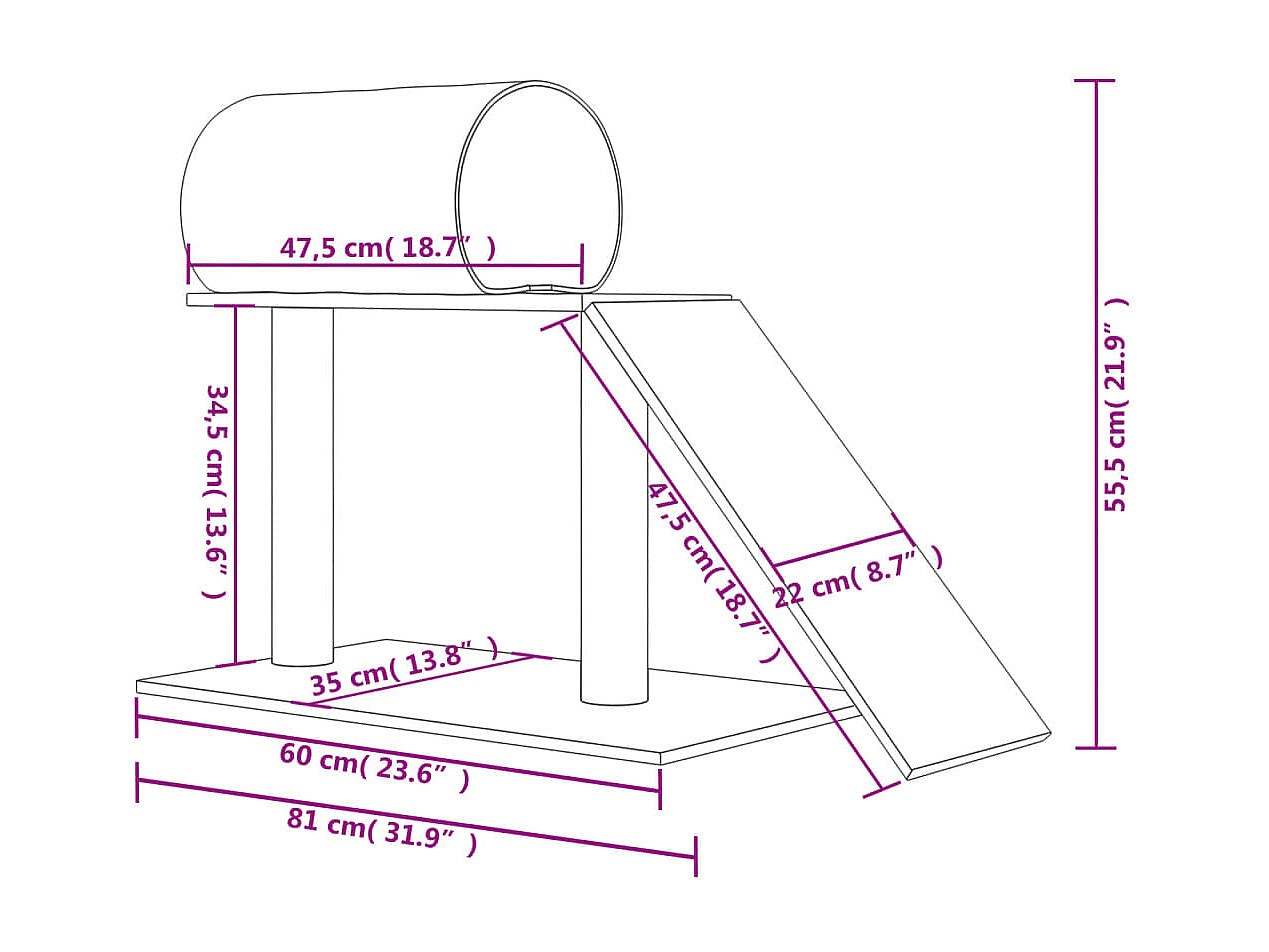 Prolenta Premium - Kattenmeubel met tunnel en ladder 55,5 cm lichtgrijs