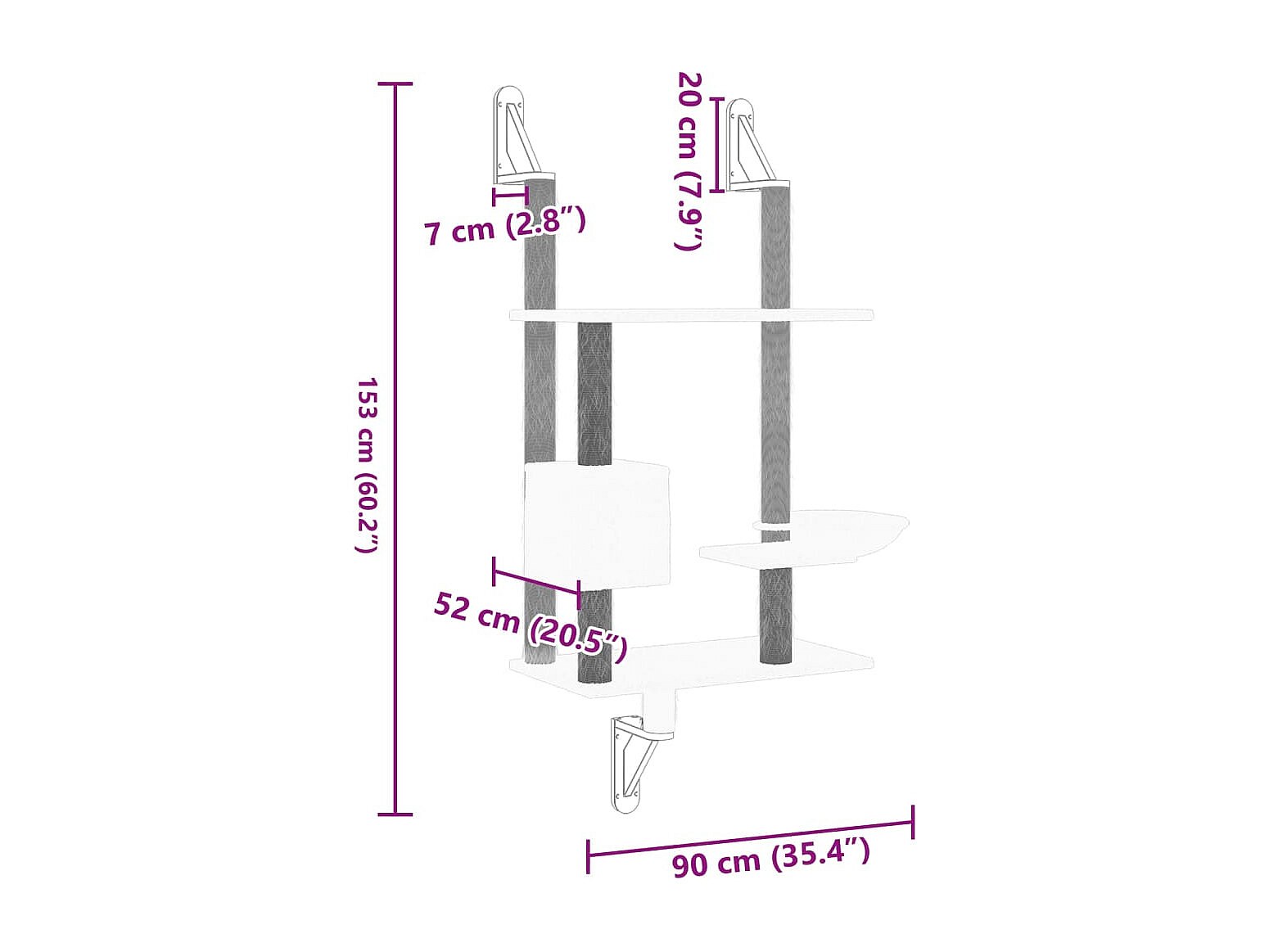 Prolenta Premium - Kattenmeubel wandgemonteerd met krabpaal 153 cm lichtgrijs