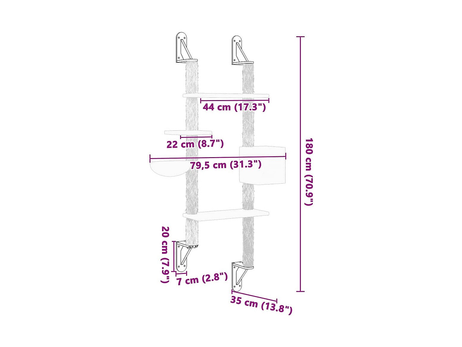 Prolenta Premium - Kattenmeubel wandgemonteerd met krabpaal 180 cm lichtgrijs