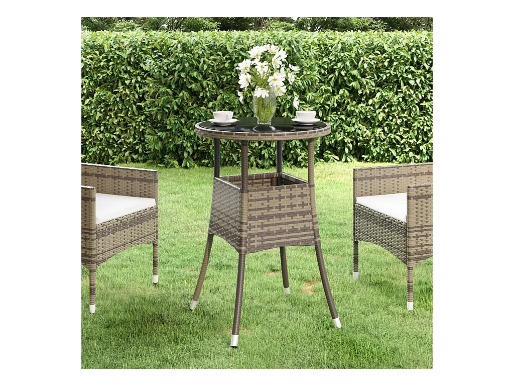 Lorkir Tuintafel Ø60x75 cm gehard glas en poly rattan grijs