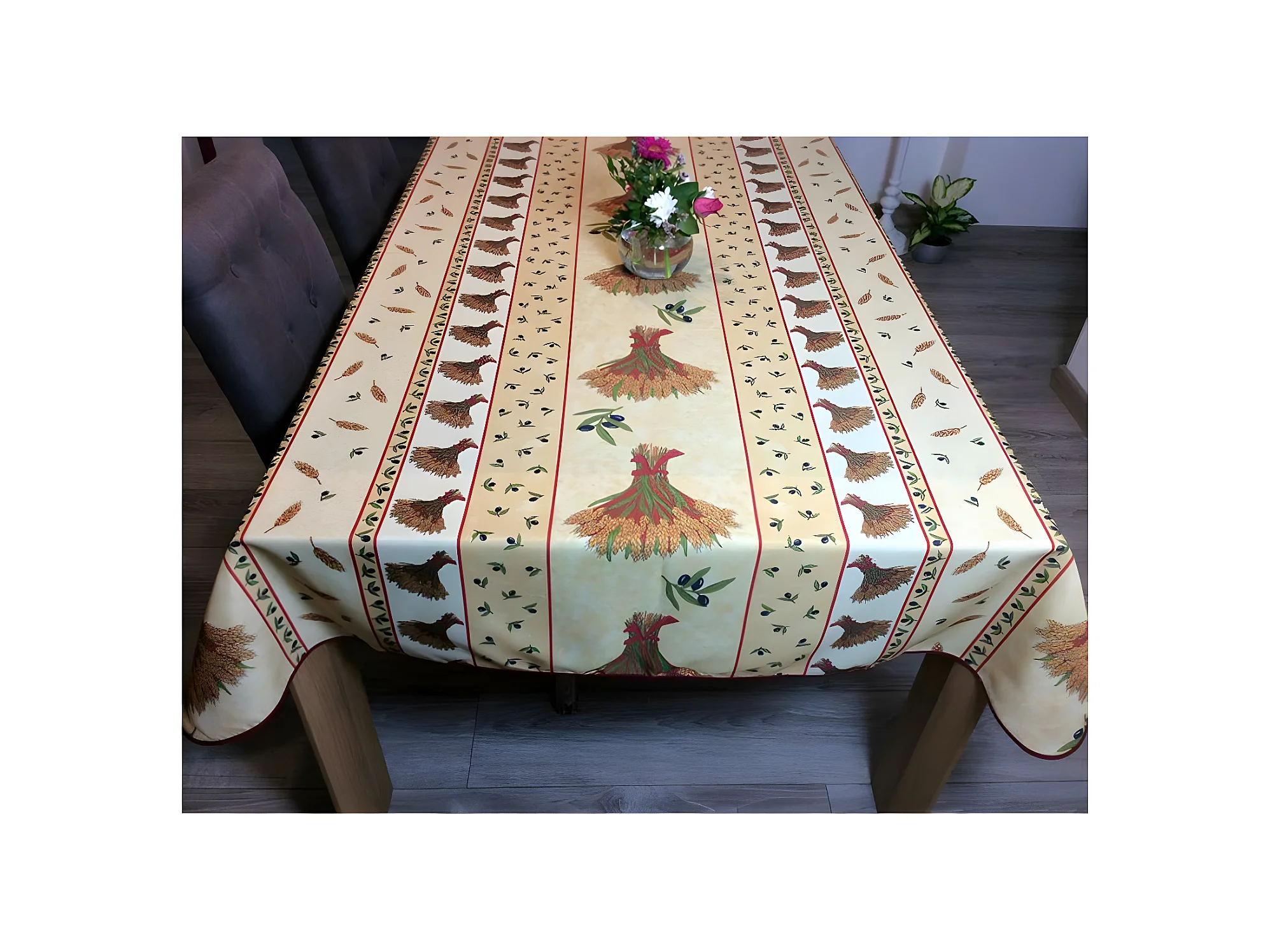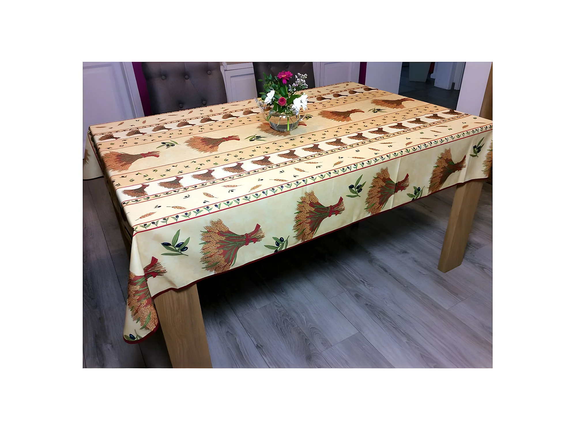 Provençaals vlekbestendig tafelkleed met beige tarweboeket 180 x 180 cm