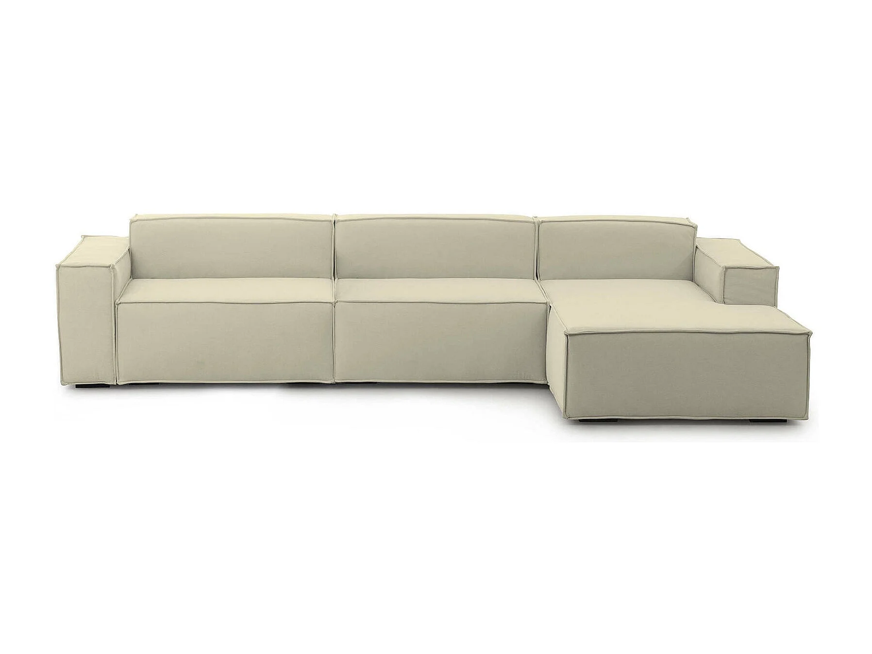 Raffaella vaste bank, 4-zits modulaire bank met rechterschiereiland, 100% Made in Italy, Moderne stoffen bank, 340x170h70 cm, Beige