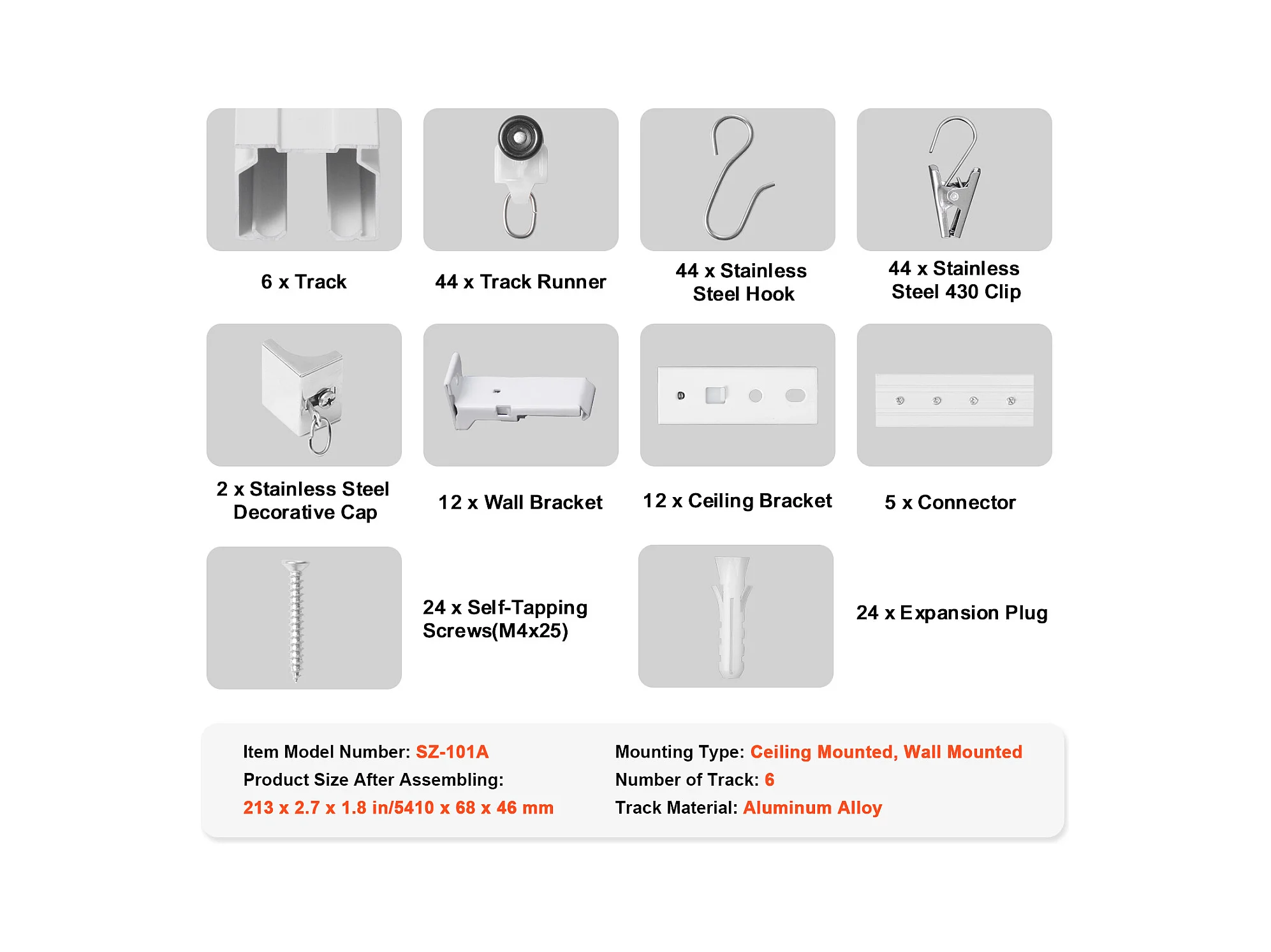 Rails Set SucceBuy voor Plafondgordijnen 540cm Ruimtescheider met Haken, Gleisysteem voor Schuifgordijnen voor Ruimtescheider