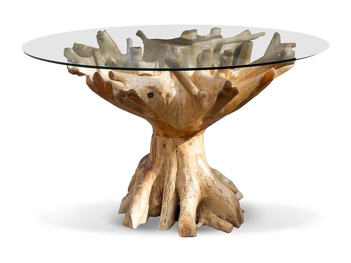RAKINA ronde eettafel van teakhout en gehard glas - Ø130 en Ø150 cm-Diameter 130cm