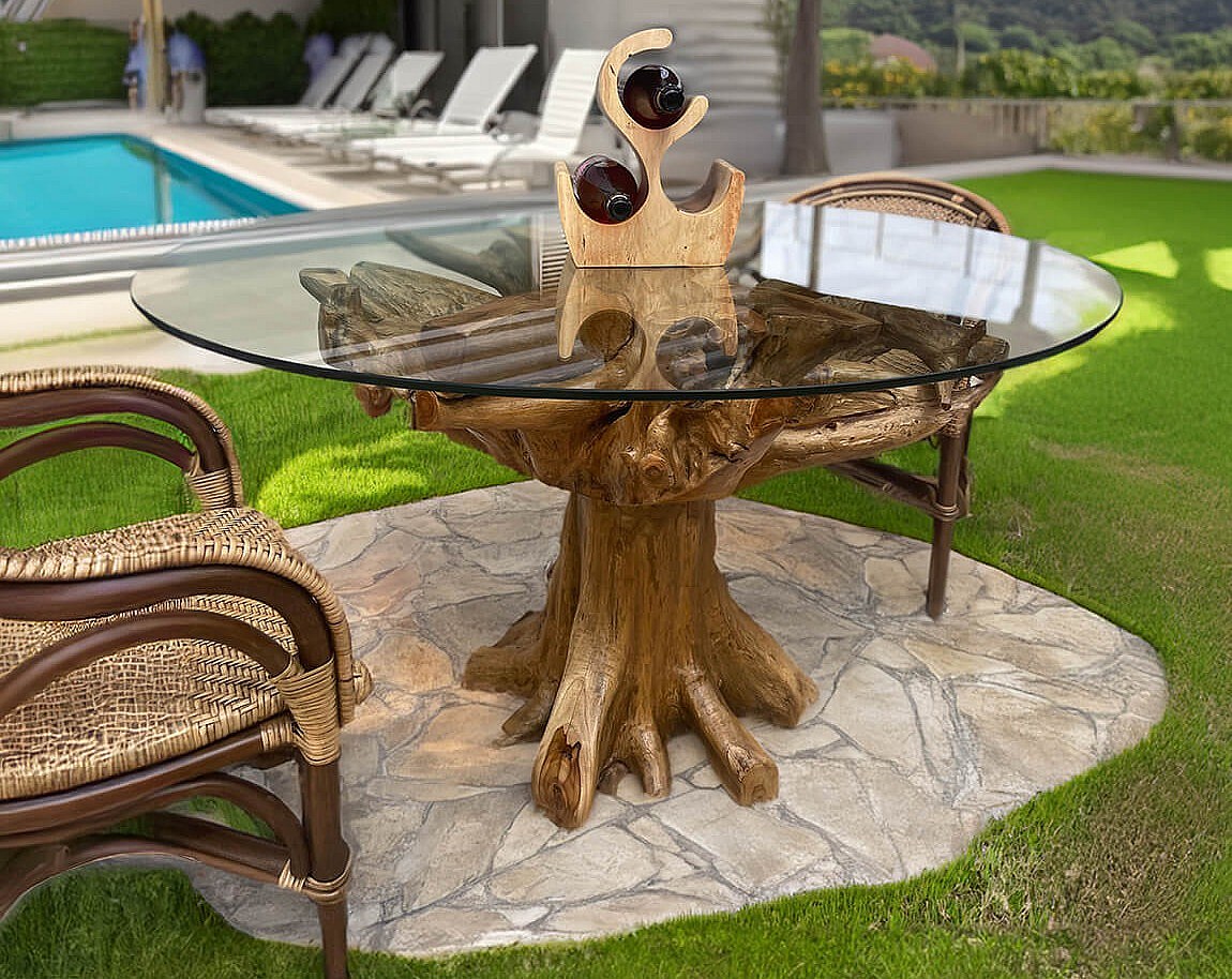 RAKINA ronde eettafel van teakhout en gehard glas - Ø130 en Ø150 cm-Diameter 150 cm