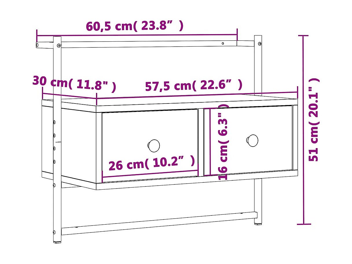 Randers Tv-meubel wandgemonteerd 60,5x30x51 cm bewerkt hout zwart
