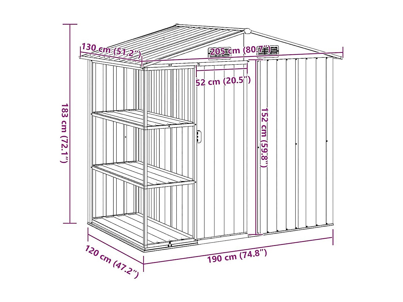 Rautalampi Tuinschuur met rek 205x130x183 cm ijzer groen