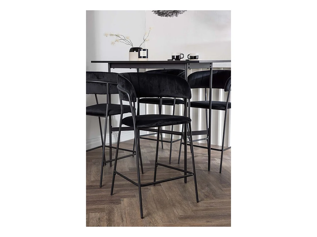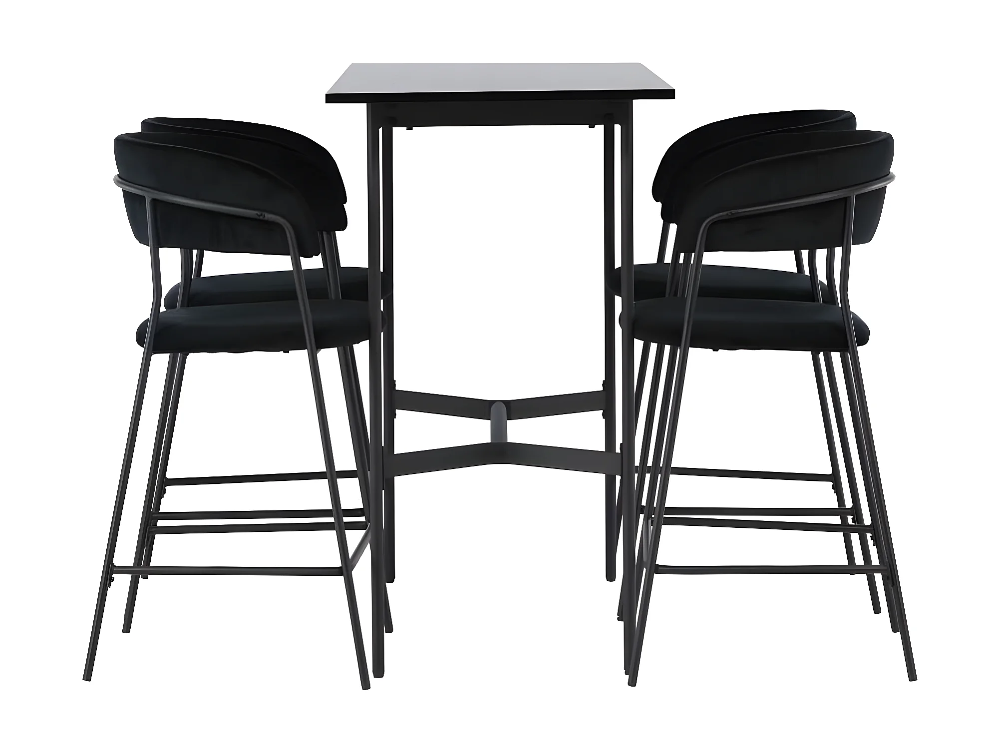 Rax barmeubelset bartafel zwart en 4 Lui barstoelen zwart.