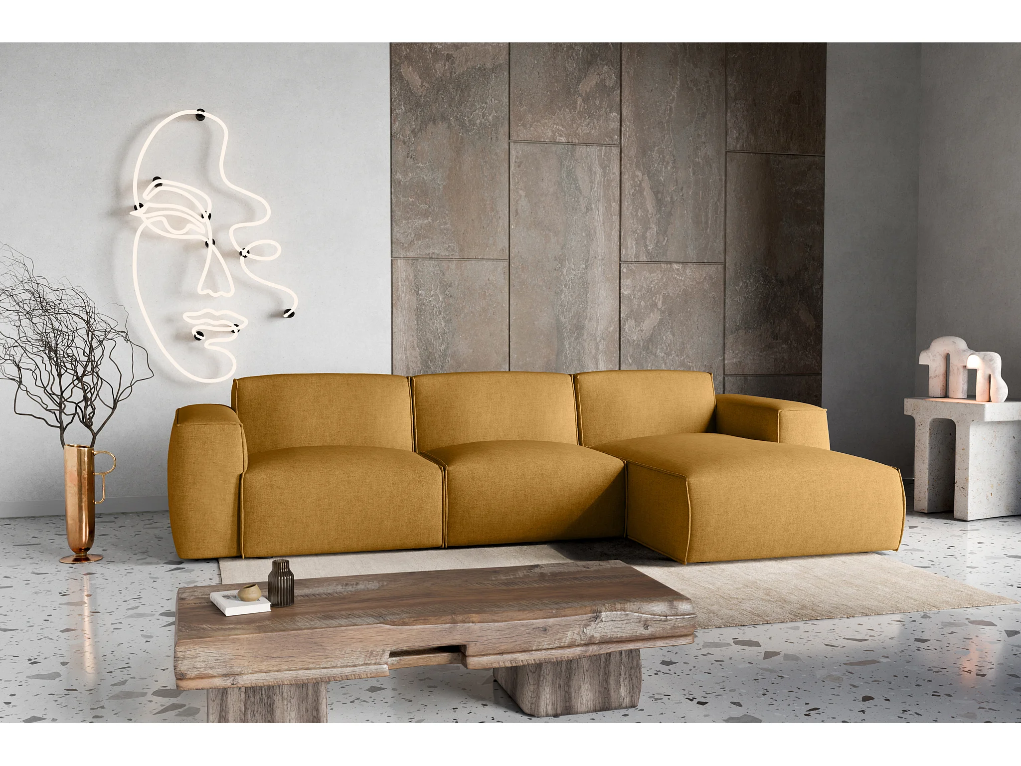 Rechter hoekslaapbank Hudson met slaapfunctie en opbergbox in mosterd PREMIUM – van de fabrikant VINOTTI