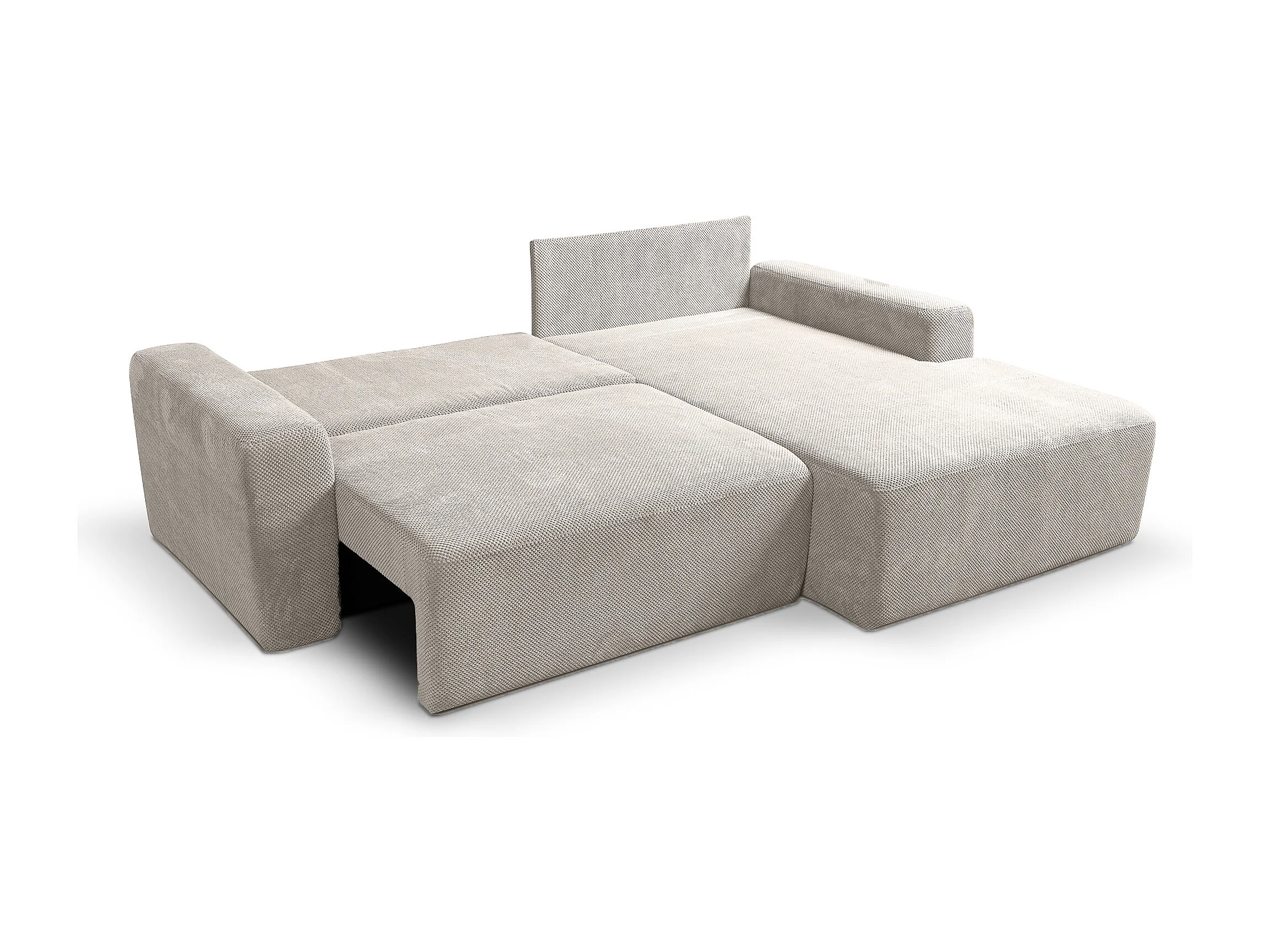 Rechter hoekslaapbank Soho met slaapfunctie en opbergbox in lichtgrijs – fabrikant VINOTTI