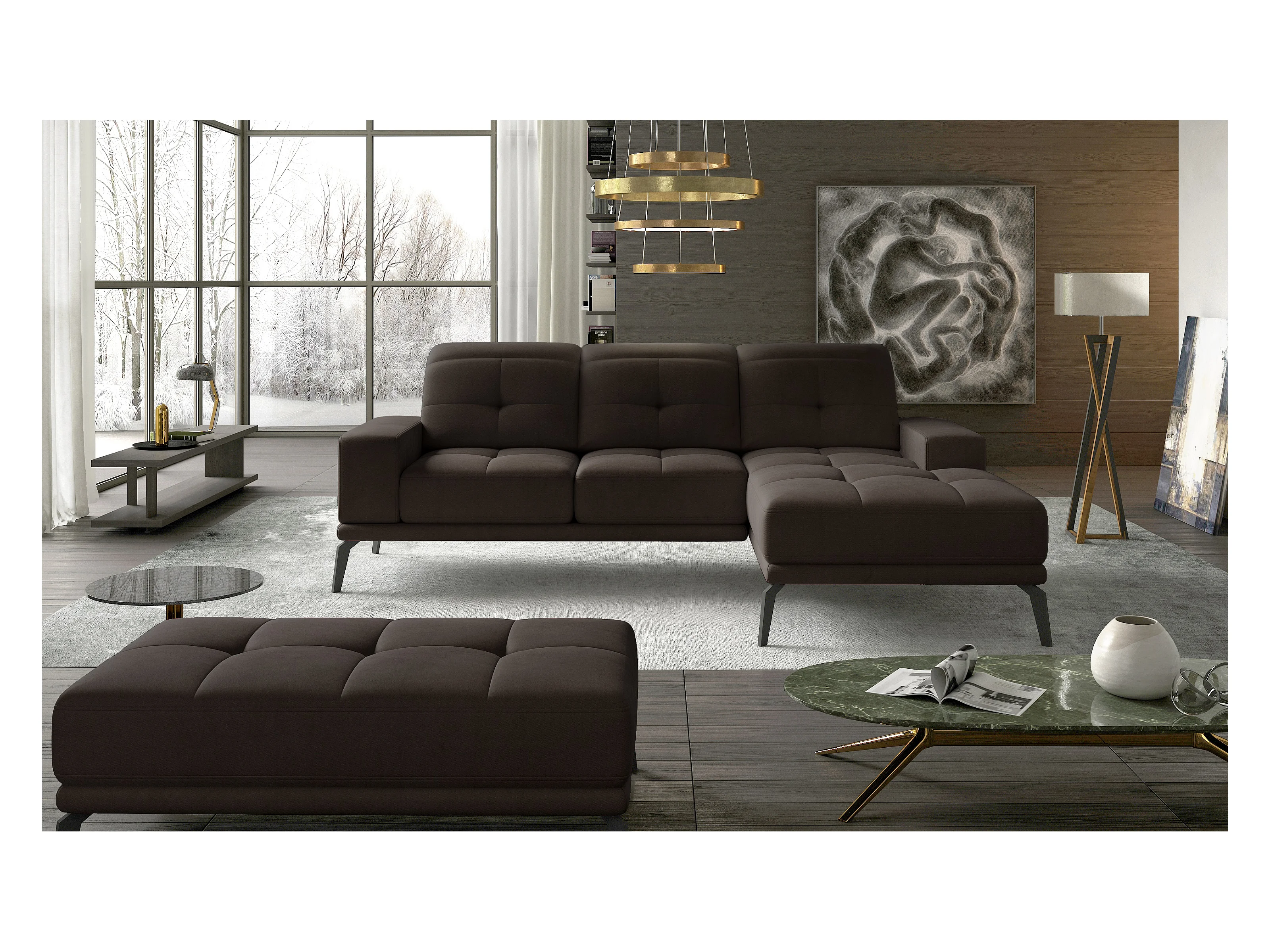 Rechterhoekbank 5 zits bruin fluweel Torpille 265 cm