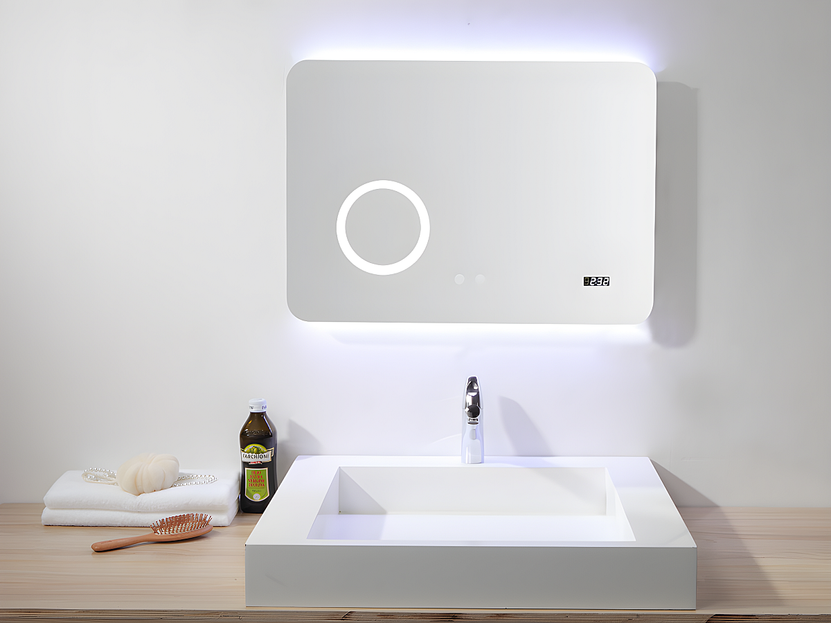 Val voor deze verlichte spiegel AILEN, functioneel, mooi design, met ingebouwde vergrootspiegel!