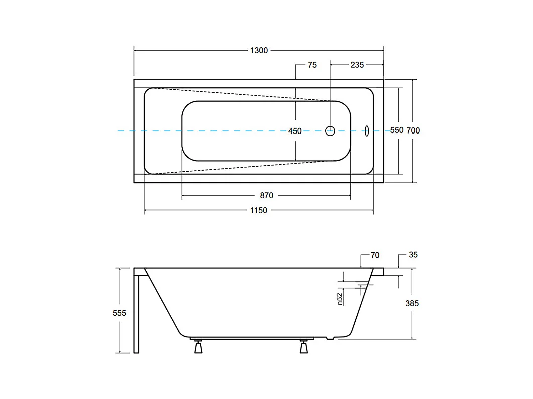 Rechthoekige badkuip TALIA 130x70 | Afvoer & poten GRATIS!
