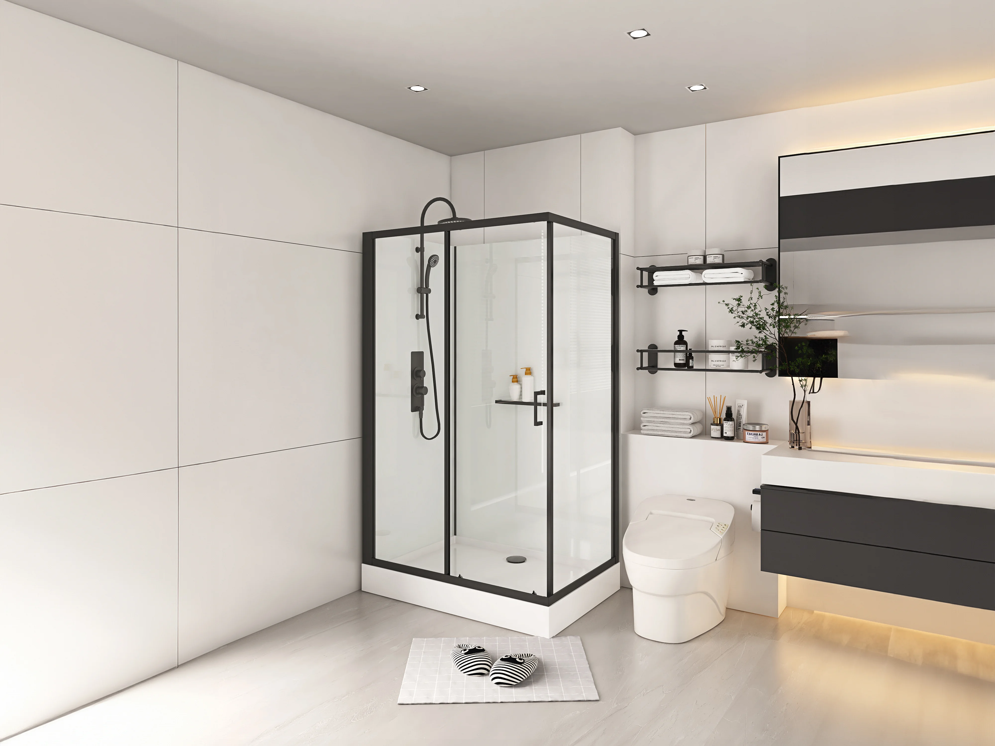 Rechthoekige douchecabine – Omkeerbare installatie - Mat zwart - L110 x B80 x H225 cm – ZODANI