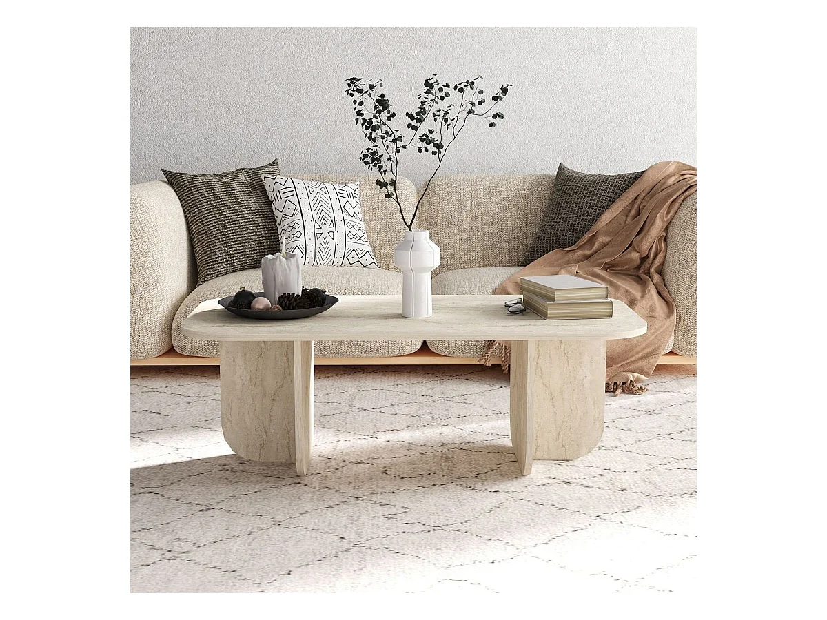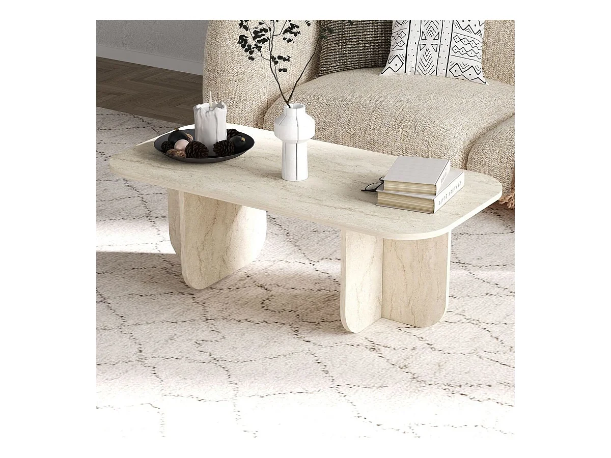 Salontafel met 2 open nissen, travertin decor L90 cm - PERA