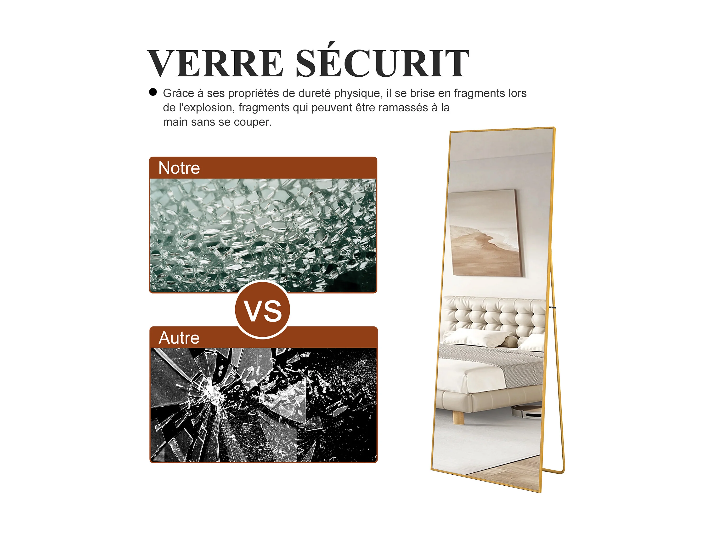 Rechthoekige staande spiegel 164×54 cm met gouden lijst – Minimalistisch en modern design