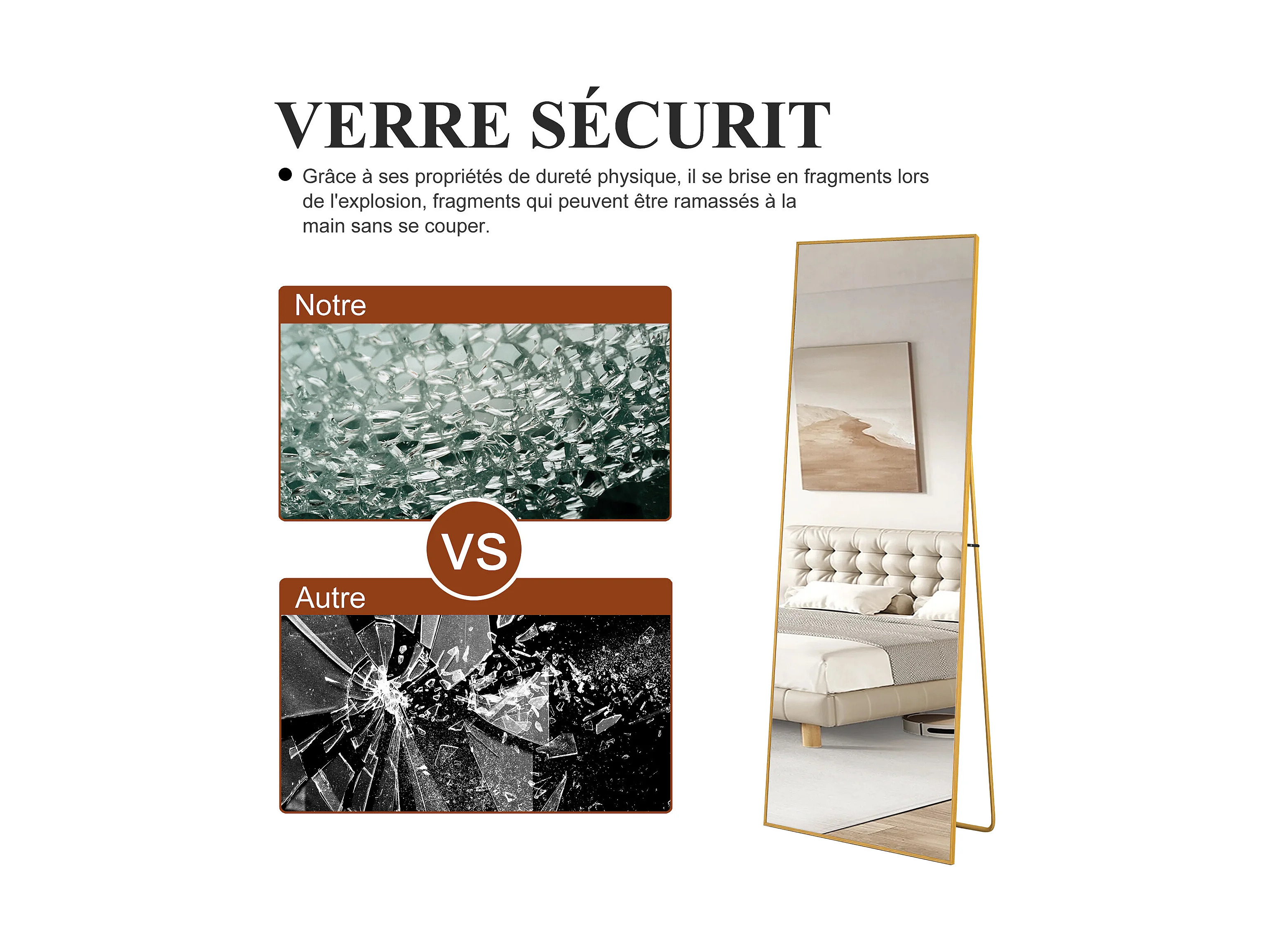 Rechthoekige staande spiegel 174×63 cm met gouden lijst – Minimalistisch en modern design