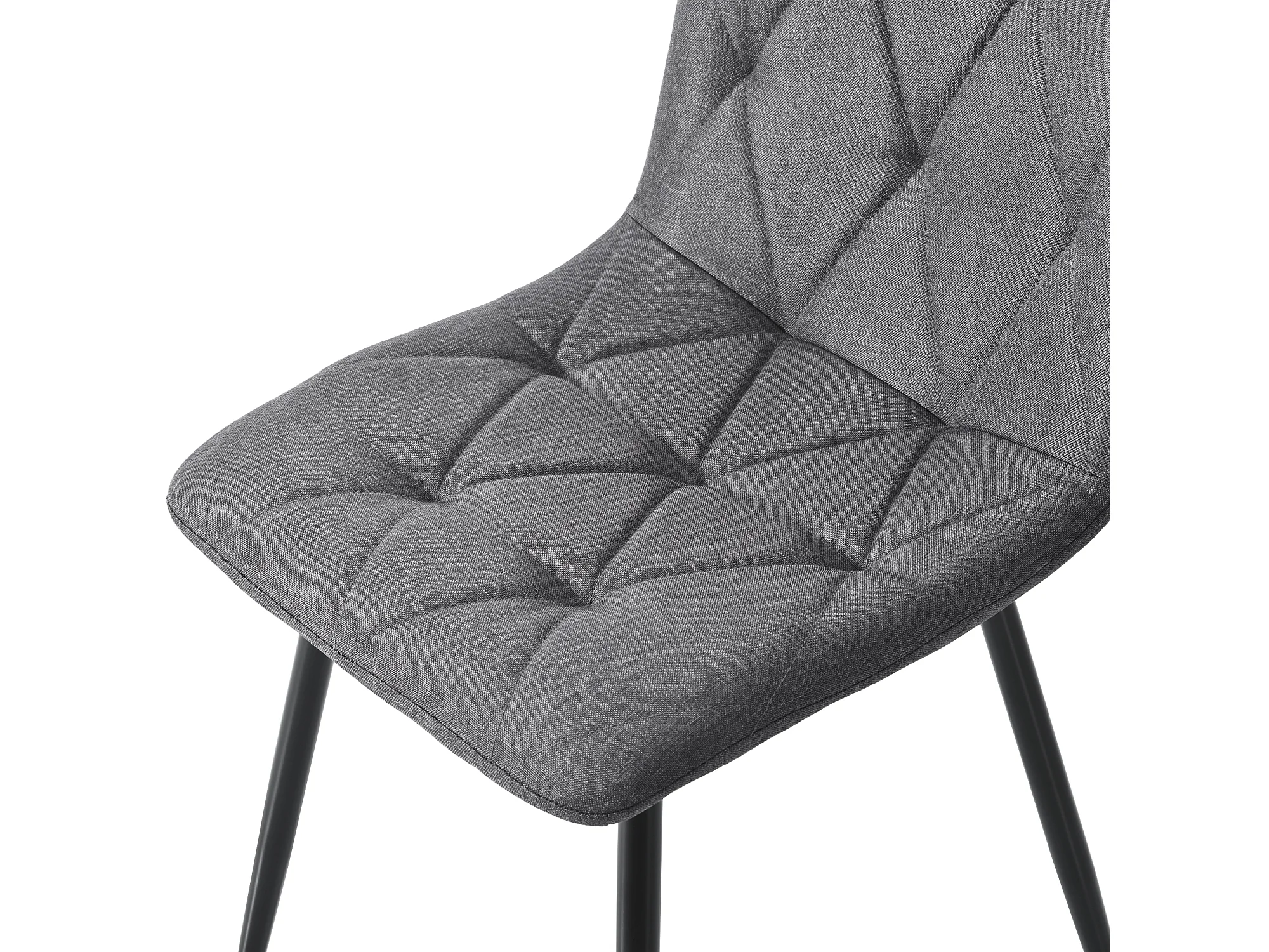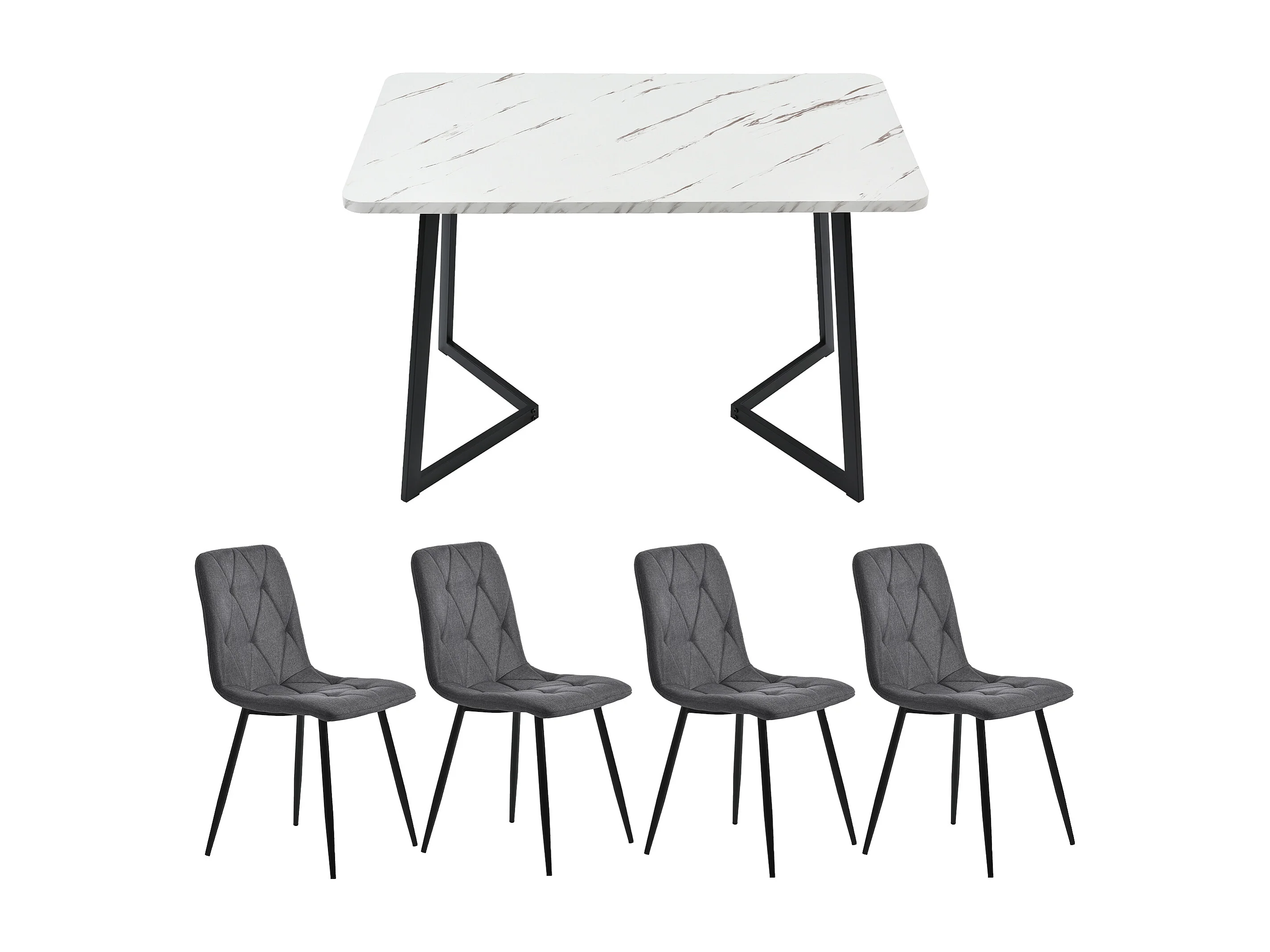 Rechthoekige tafelset 117x68 cm en 4 stoelen in donkergrijs linnen - zwarte metalen tafelpoten - wit MDF-blad