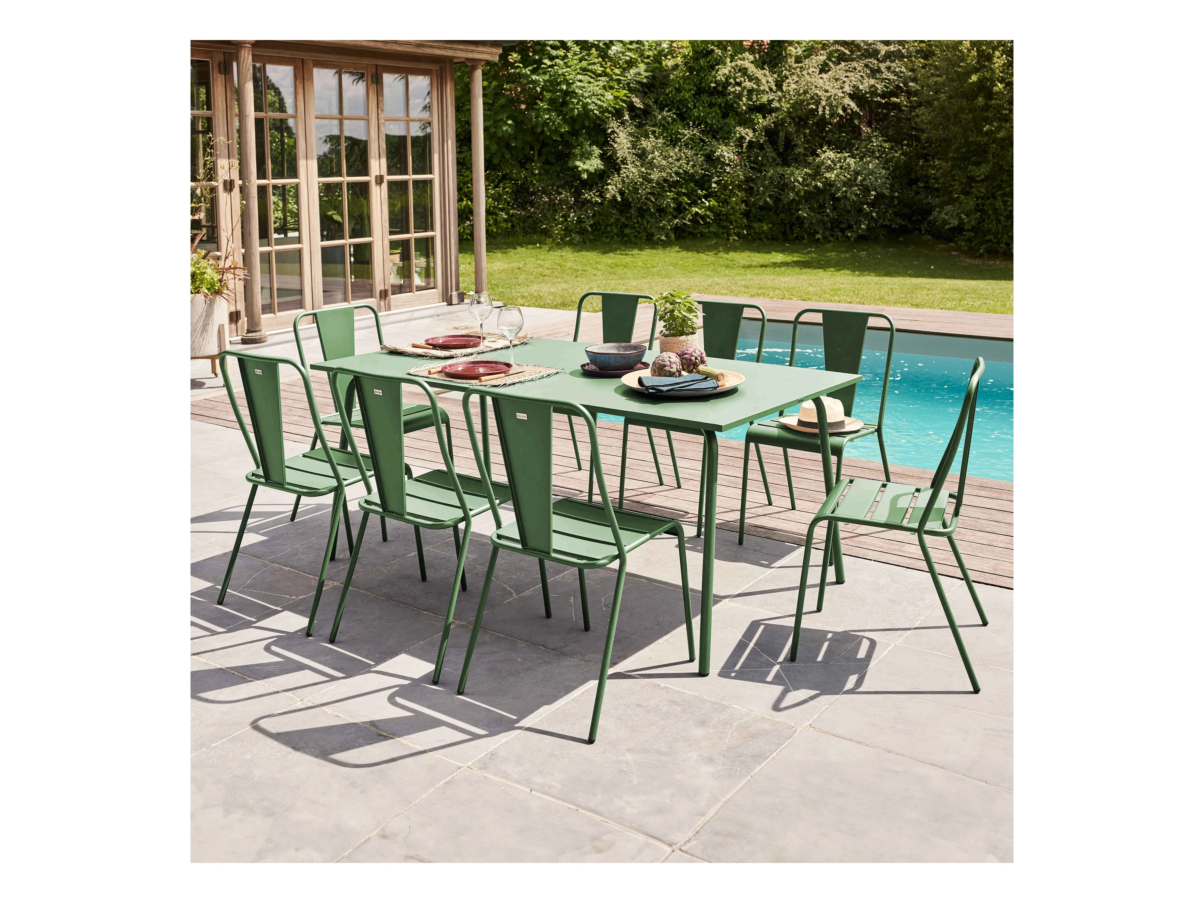Vierkante groene tuintafel